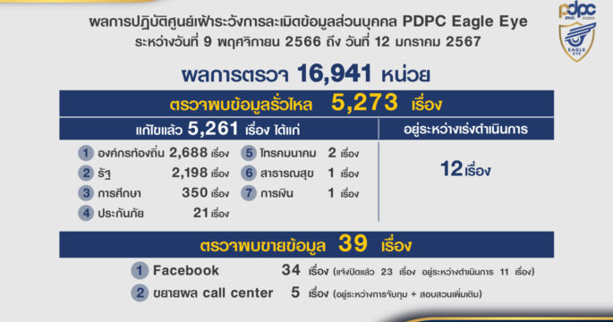 PDPC เดินหน้าตรวจสอบเชิงรุกต่อเนื่อง ในรอบ 2 เดือน สกัดการรั่วไหลข้อมูลส่วนบุคคลกว่า 5,000 เคส