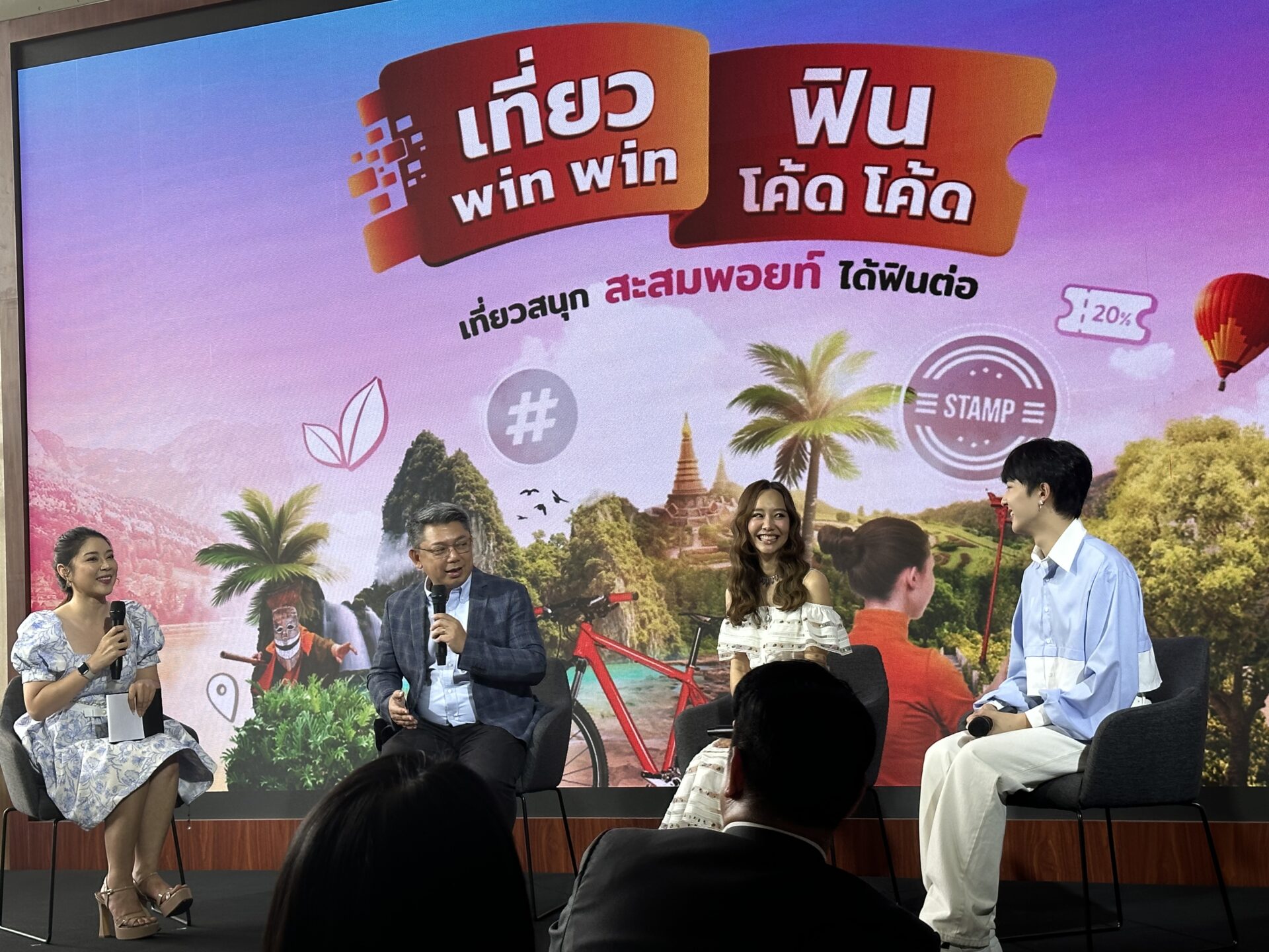 การท่องเที่ยวแห่งประเทศไทย (ททท.) เปิดตัวแคมเปญ “เที่ยว Win Win ฟิน โค้ด โค้ด” (เที่ยวสนุก สะสมพ้อยท์ ได้ฟินต่อ)” ผนึกกำลังพันธมิตรผู้ประกอบการท่องเที่ยว จัดเต็มส่วนลดพิเศษ และดีลท่องเที่ยวสุดคุ้ม ผ่านแพลตฟอร์ม Line MyShop และ LAZADA พร้อมดึง เต้ย-จรินทร์พร จุนเกียรติ ตัวแทนนักท่องเที่ยวคนรุ่นใหม่ที่ใส่ใจสิ่งแวดล้อมมานำเสนอแคมเปญฯก่อนจะเสริมทัพด้วย นุนิว–ชวรินทร์ เพริศพิริยะวงศ์ ร่วมสร้างแรงบันดาลใจสู่การเดินทางท่องเที่ยว พร้อมร่วมกิจกรรมเอ็กซ์คลูซีฟในรูปแบบของการท่องเที่ยวเชิงอนุรักษ์ ส่งมอบประสบการณ์ท่องเที่ยวที่มีคุณค่าและความหมายให้การเดินทางท่องเที่ยวไทยสนุกยิ่งกว่าที่เคย