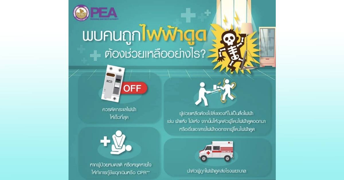 27 มิ.ย. – PEA แนะนำพบคนถูกไฟฟ้าดูด ต้องช่วยเหลืออย่างไร