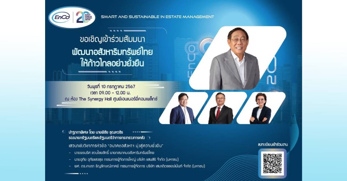 5 ก.ค. – เนื่องในโอกาสครบรอบ 20 ปี บริษัท เอนเนอร์ยี่ คอมเพล็กซ์ จำกัด หรือ EnCo ผู้นำด้านการพัฒนาและบริหารอสังหาริมทรัพย์ ขอเชิญผู้สนใจเข้าร่วมงานสัมมนา “พัฒนาอสังหาริมทรัพย์ไทย ให้ก้าวไกลอย่างยั่งยืน : Smart and Sustainable in Estate Management” วันพุธที่ 10 กรกฎาคม 2567 เวลา 09.00 – 12.00 น. ณ ห้อง The Synergy Hall ศูนย์เอนเนอร์ยี่คอมเพล็กซ์