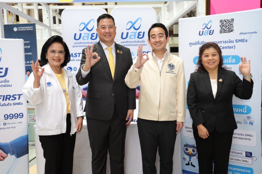 31 ก.ค. – นายสิทธิกร ดิเรกสุนทร กรรมการและผู้จัดการทั่วไป บรรษัทประกันสินเชื่ออุตสาหกรรมขนาดย่อม (บสย.) พร้อมด้วย นางดุสิดา ทัพวงษ์ รองผู้จัดการทั่วไปอาวุโส สายงานบริหารช่องทางและพัฒนาผู้ประกอบการ ร่วมแสดงความยินดีในโอกาสที่ กองทุนการออมแห่งชาติ (กอช.) ดำเนินงานครบรอบ 9 ปี ในกิจกรรม “9 ปี กอช. ก้าวสู่อนาคตที่มั่นคง” โดยมี นายเผ่าภูมิ โรจนสกุล รัฐมนตรีช่วยว่าการกระทรวงการคลัง เป็นประธานเปิดงาน โดย บสย. ได้ร่วมออกบูธให้คำปรึกษาเกี่ยวกับการค้ำประกันสินเชื่อ และเตรียมความพร้อมผู้ประกอบการ SMEs ก่อนยื่นขอสินเชื่อกับสถาบันการเงิน โดยทีมงาน บสย. สำนักงานเขตนครหลวง นอกจากนี้ ได้เพิ่มความสะดวกให้ SMEs สามารถเข้ามาตรวจสุขภาพทางการเงิน พร้อมจองคิวขอรับคำปรึกษาทางการเงิน ได้ที่ LINE OA : @tcgfirst ฟรี.. ไม่มีค่าใช้จ่าย