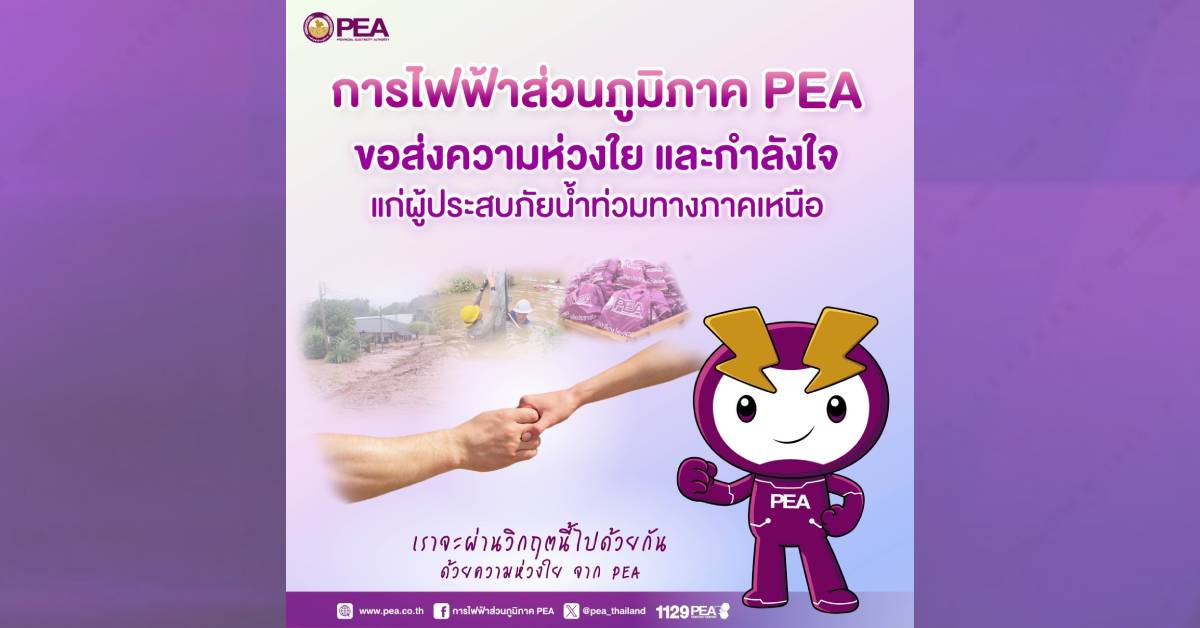 25 ส.ค.- การไฟฟ้าส่วนภูมิภาค PEA ขอส่งความห่วงใยและกำลังใจแก่ผู้ประสบภัยน้ำท่วมทางภาคเหนือ.