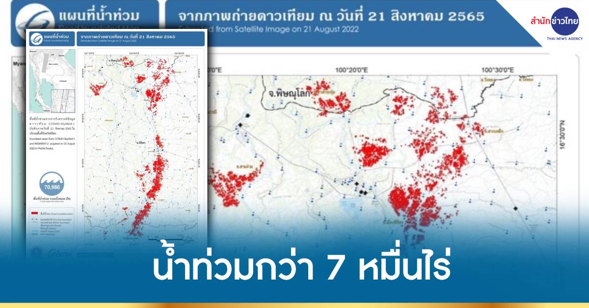 กรุงเทพฯ 22 ส.ค.- GISTDA เปิดเผยภาพจากดาวเทียม พบ จ.พิจิตร น้ำท่วมแล้วกว่า 7 หมื่นไร่