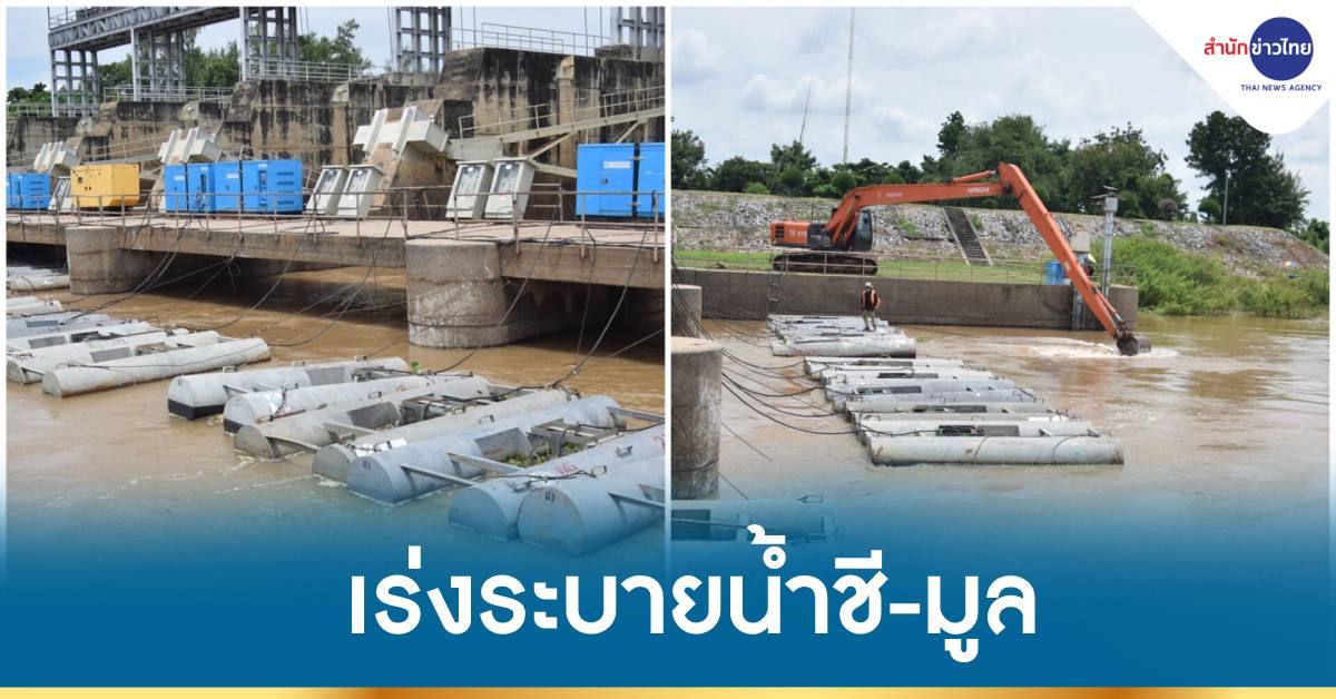 สำหรับน้ำจากแม่น้ำชีจะไหลมาบรรจบกับแม่น้ำมูลบริเวณอ. เมือง จ. อุบลราชธานี ก่อนถึงตัวเมือง ขณะนี้ได้เร่งระบายน้ำมูลออกสู่แม่น้ำโขงเพื่อให้มีพื้นที่รองรับน้ำจากแม่น้ำชีที่จะไหลลงมา โดยติดตั้งเครื่องผลักดันน้ำในลำน้ำมูล100 เครื่องบริเวณสะพานพิบูลมังสาหาร เดินเครื่องแล้ว 40 เครื่อง จะเดินเครื่องได้ครบทั้งหมดในอีก 2 วันและมีแผนจะติดตั้งที่เขื่อนธาตุน้อยและเขื่อนยโสธรอีกเพิ่มอีกเพื่อเร่งผลักดันน้ำลงสู่แม่น้ำโขงให้รวดเร็วขึ้น