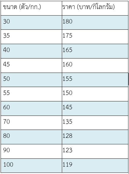 – กุ้งพิการ ไม่เกินร้อยละ 5