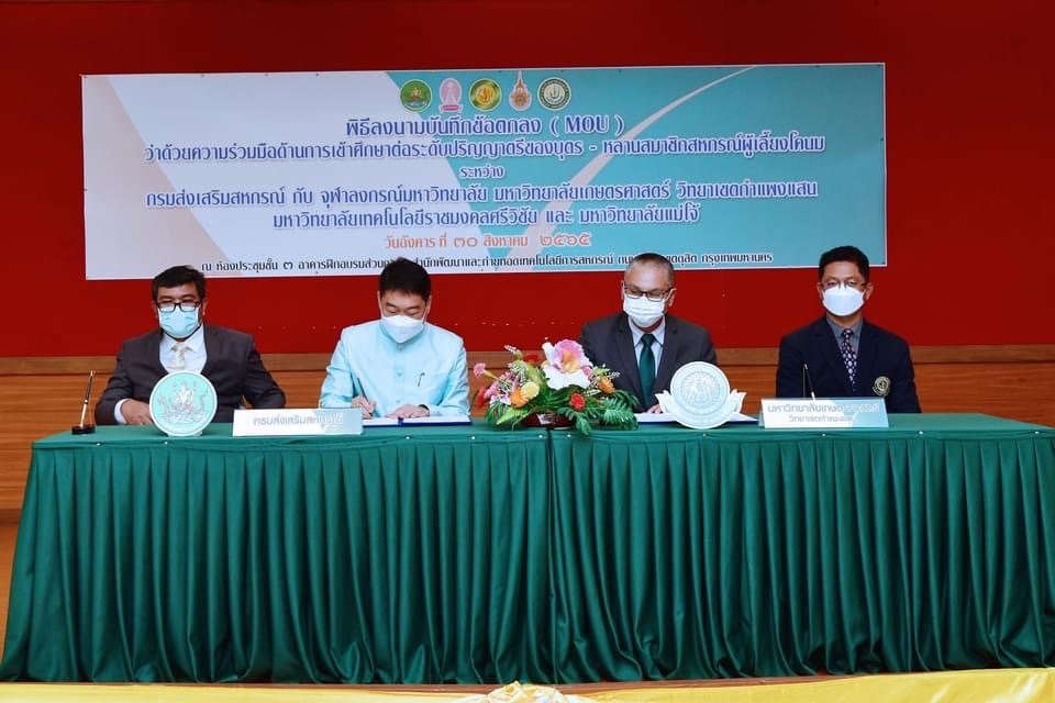 นายวิศิษฐ์ ศรีสุวรรณ์ อธิบดีกรมส่งเสริมสหกรณ์ลงนามบันทึกข้อตกลงความร่วมมือกับศาสตราจารย์ ดร.สุวัจน์ ธัญรส อธิการบดีมหาวิทยาลัยเทคโนโลยีราชมงคลศรีวิชัย รศ.น.สพ.ดร.อนุชัย ภิญโญภูมิมินทร์ รองอธิการบดีมหาวิทยาลัยเกษตรศาสตร์ วิทยาเขตกำแพงแสน ดร.อานนท์ ปะเสระกัง รองคณบดีฝ่ายวิชาการ คณะสัตวศาสตร์และเทคโนโลยี มหาวิทยาลัยแม่โจ้ และรศ.น.สพ.ดร.สนธยา เตียวศิริทรัพย์ รองคณบดีวิชาการ วิรัชกิจและกิจการนิสิต จุฬาลงกรณ์มหาวิทยาลัยเพื่อสนับสนุนด้านการศึกษาต่อระดับปริญญาตรีสาขาสัตวแพทยศาสตร์และสาขาสัตวศาสตร์แก่บุตรหลานสมาชิกสหกรณ์ผู้เลี้ยงโคนมและสหกรณ์การเกษตรที่มีสมาชิกเลี้ยงโคนมในการศึกษา โดยมอบทุนการศึกษาให้ 145 ทุน แบ่งเป็น จุฬาลงกรณ์มหาวิทยาลัย 30 ทุน มหาวิทยาลัยเกษตรศาสตร์ วิทยาเขตกำแพงแสน 30 ทุน มหาวิทยาลัยมหาสารคาม 15 ทุน มหาวิทยาลัยเทคโนโลยีราชมงคลศรีวิชัย 18 ทุน มหาวิทยาลัยแม่โจ้ 49 ทุน และมหาวิทยาลัยขอนแก่น 3 ทุน