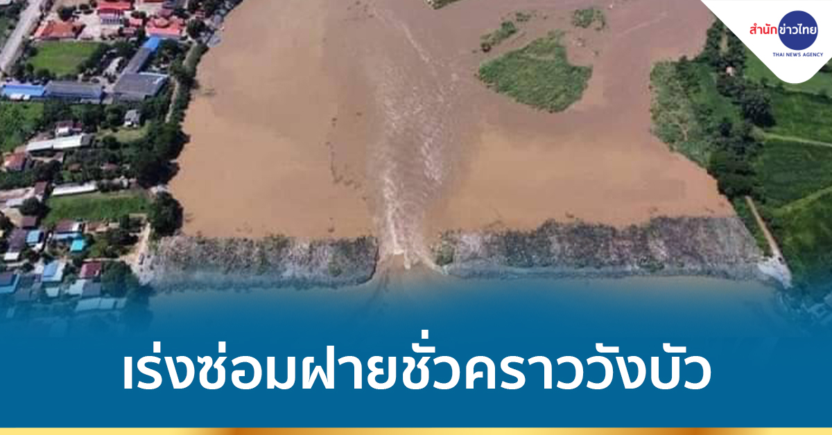 กรุงเทพฯ 1 ก.ย.- อธิบดีกรมชลประทานสั่งด่วน เร่งซ่อมฝายชั่วคราววังบัว กลางแม่น้ำปิง จ.กำแพงเพชร ชำรุดจากน้ำกัดเซาะ โดยจะนำหินขนาดใหญ่ถมปิดช่องขาดที่กว้าง 40 เมตร รวมถึงให้เร่งส่งน้ำเข้านาปีของเกษตรกรที่ไม่สามารถรับน้ำจากคลองส่งน้ำได้เพื่อป้องกันความเสียหายที่จะเกิดขึ้นต่อผลผลิตที่กำลังจะเก็บเกี่ยว
