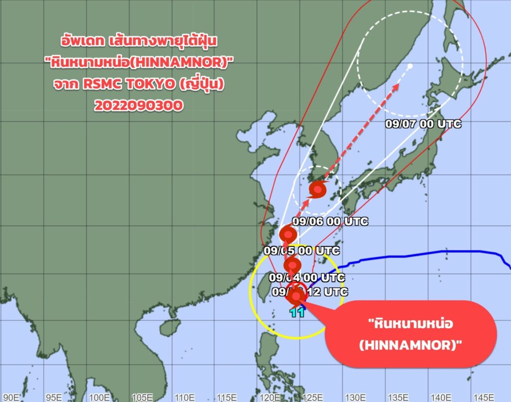 นางสาวชมภา ชมภูรัตน์ อธิบดีกรมอุตุนิยมวิทยากล่าวว่า จากการติดตามการเคลื่อนที่ของพายุไต้ฝุ่น “หินหนามหน่อ” พบว่า กำลังเคลื่อนตัวทางทิศเหนือ ห่างออกไปจากไทยไปเรื่อยๆ โดยคาดว่า จะขึ้นฝั่งบริเวณประเทศจีนฝั่งตะวันออก ญี่ปุ่น หรือเกาหลีใต้ โดยพายุลูกนี้ไม่มีผลกระทบต่อประเทศไทยโดยตรง