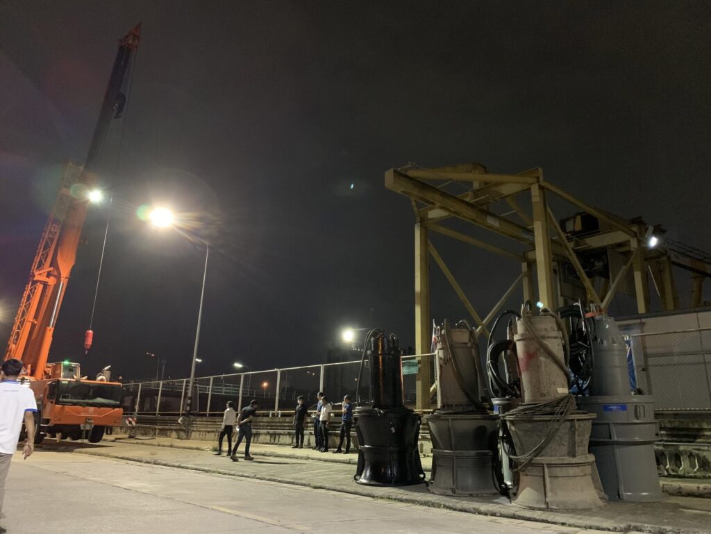 นายอเนก ก้านสังวอน ผู้อำนวยการสำนักเครื่องจักรกลกล่าวว่า นำเครื่องสูบน้ำไปเสริมที่สถานีสูบน้ำกึ่งถาวรปากคลองรังสิตรวม 9 เครื่อง โดยขณะนี้มีเครื่องสูบน้ำที่ใช้งานอยู่ 11 เครื่องจึงรวมเป็น 20 เครื่อง ปกติแล้วสลับใช้งาน โดยเดินเครื่องพร้อมกันประมาณ 10 เครื่อง ที่เหลือพักและซ่อมบำรุงตลอด ตั้งแต่มีฝนตกชุกเครื่องสูบน้ำทำงานหนักมาก อีกทั้งมีขยะและวัชพืชจำนวนมากเข้าไปติด ทำให้บางเครื่องเสีย จึงจะเร่งซ่อมโดยเร็วเพื่อนำมาสำรองไว้ ทั้งนี้เจ้าหน้าที่จะเร่งติดตั้งเครื่องสูบน้ำที่เพิ่มทั้ง 9 เครื่องตลอดทั้งคืนเพื่อให้ใช้งานได้ในวันพรุ่งนี้.-สำนักข่าวไทย