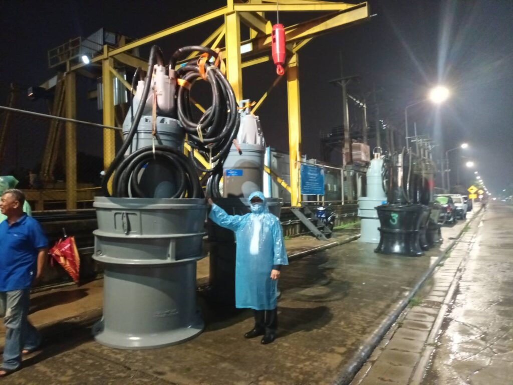 นายประพิศ จันทร์มา อธิบดีกรมชลประทาน เดินทางไปอำนวยการเร่งรัดติดตั้งเครื่องสูบน้ำที่สถานีสูบน้ำกึ่งถาวรปากคลองรังสิตประยูรศักดิ์ โครงการส่งน้ำและบำรุงรักษารังสิตใต้ จังหวัดปทุมธานี ทั้งนี้เจ้าหน้าที่ทำงานตลอดทั้งคืน ทำให้ถึงเช้าวันนี้ติดตั้งได้แล้ว 6 เครื่อง ขณะนี้กำลังติดตั้งต่อให้ครบ 9 เครื่อง ตามที่สั่งการให้สำนักเครื่องจักรกลนำไปเสริมประสิทธิภาพการระบายน้ำจากคลองรังสิตประยูรศักดิ์ออกสู่แม่น้ำเจ้าพระยา เมื่อรวมกับเครื่องสูบน้ำที่ติดตั้งอยู่เดิม 11 เครื่อง จะทำให้วันนี้เดินเครื่องได้รวม 20 เครื่อง