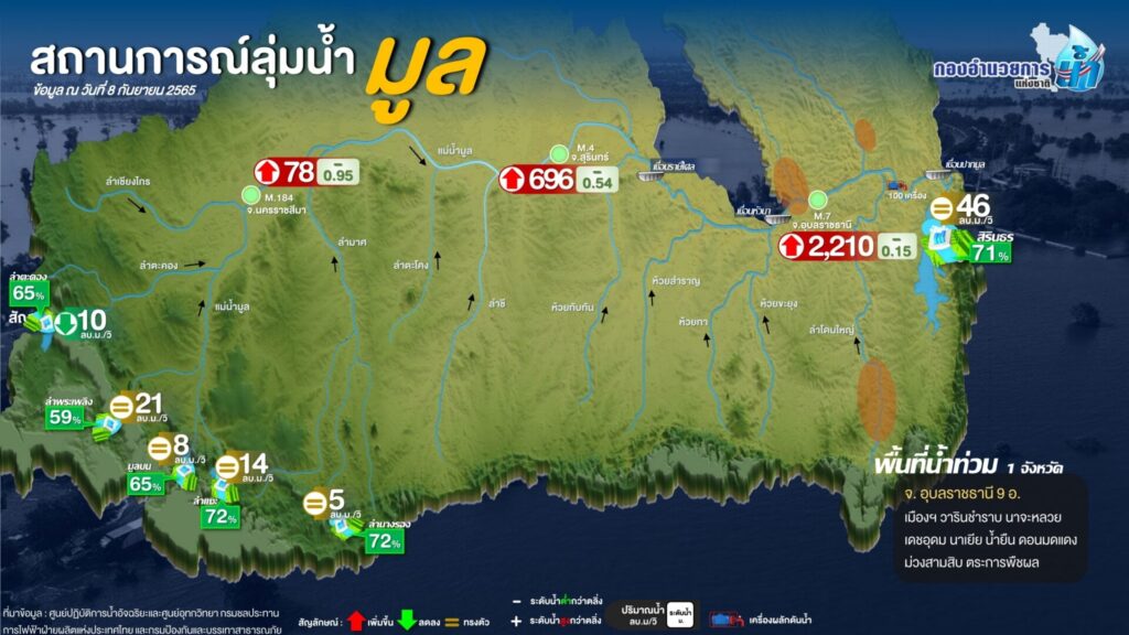 ดร.สุรสีห์ กิตติมณฑล เลขาธิการสำนักงานทรัพยากรน้ำแห่งชาติ (สทนช.) ในฐานะรองผู้อำนวยการกองอำนวยการน้ำแห่งชาติ (กอนช.) เป็นประธานเปิดศูนย์บริหารจัดการน้ำส่วนหน้าในพื้นที่เสี่ยงอุทกภัยภาคตะวันออกเฉียงเหนือ และเป็นประธานการประชุมคณะทำงานอำนวยการบริหารจัดการน้ำส่วนหน้าในพื้นที่เสี่ยงอุทกภัยภาคตะวันออกเฉียงเหนือ ครั้งที่ 1/2565 โดยมีผู้แทนจากหน่วยงานที่เกี่ยวข้อง อาทิ กรมป้องกันและบรรเทาสาธารณภัย กรมอุตุนิยมวิทยา สถาบันสารสนเทศทรัพยากรน้ำ (องค์การมหาชน) กรมชลประทาน การไฟฟ้าฝ่าผลิตแห่งประเทศไทย กรมทรัพยากรน้ำ และ GISTDA เป็นต้น เข้าร่วม ณ สำนักงานชลประทานที่ 7 จ.อุบลราชธานี