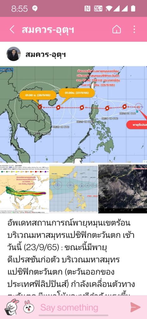 นางสาวชมภารี ชมภูรัตน์ อธิบดีกรมอุตุนิยมวิทยากล่าวว่า กำลังเฝ้าติดตามการเคลื่อนตัวของพายุดีเปรสชันที่ก่อตัวบริเวณมหาสมุทรแปซิฟิกตะวันตก (ตะวันออกของประเทศฟิลิปปินส์) ซึ่งกำลังเคลื่อนตัวทางตะวันตก มีแนวโน้มจะทวีกำลังแรงขึ้นเป็นพายุโซนร้อนได้ และเคลื่อนตัวลงสู่ทะเลจีนใต้ จากนั้นจะเคลื่อนตัวเข้าใกล้ชายฝั่งประเทศเวียดนามช่วงวันที่ 28 ก.ย.65