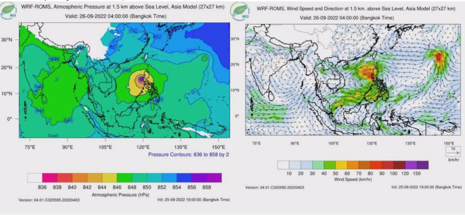 ดร. สุทัศน์ วีสกุล ผู้อำนวยการสถาบันสารสนเทศทรัพยากรน้ำ (องค์การมหาชน) หรือสสน. กล่าวว่า ขณะนี้พายุไต้ฝุ่น “โนรู” อยู่ในทะเลจีนใต้ มีความเร็วลมสูงสุดใกล้ศูนย์กลางประมาณ 140 กิโลเมตร/ชั่วโมง เป็นไต้ฝุ่นกำลังแรง 2-3 ทิศทางเคลื่อนที่ตะวันตก โดยจะทวีกำลังแรงขึ้นแน่นอนก่อนเคลื่อนขึ้นฝั่งประเทศเวียดนามเนื่องจากทะเลจีนใต้มีสภาพอุ่น อุณหภูมิ 29-30 องศาเซลเซียส ระหว่างเคลื่อนที่ผ่านจึงดึงไอน้ำจากทะเลเข้าสู่พายุทำให้มีพลังงานมากขึ้น คาดว่า จะขึ้นฝั่งเวียดนามคืนวันที่ 28 ก.ย. ช้ากว่าการคาดการณ์เดิม 6-7 ชั่วโมง เมื่อขึ้นฝั่งประเทศเวียดนามจะอ่อนกำลังลง แล้วเคลื่อนผ่านประเทศลาว จากนั้นเข้าสู่ไทยเช้าวันที่ 29 ก.ย. ทางตอนบนของจังหวัดอุบลราชธานี