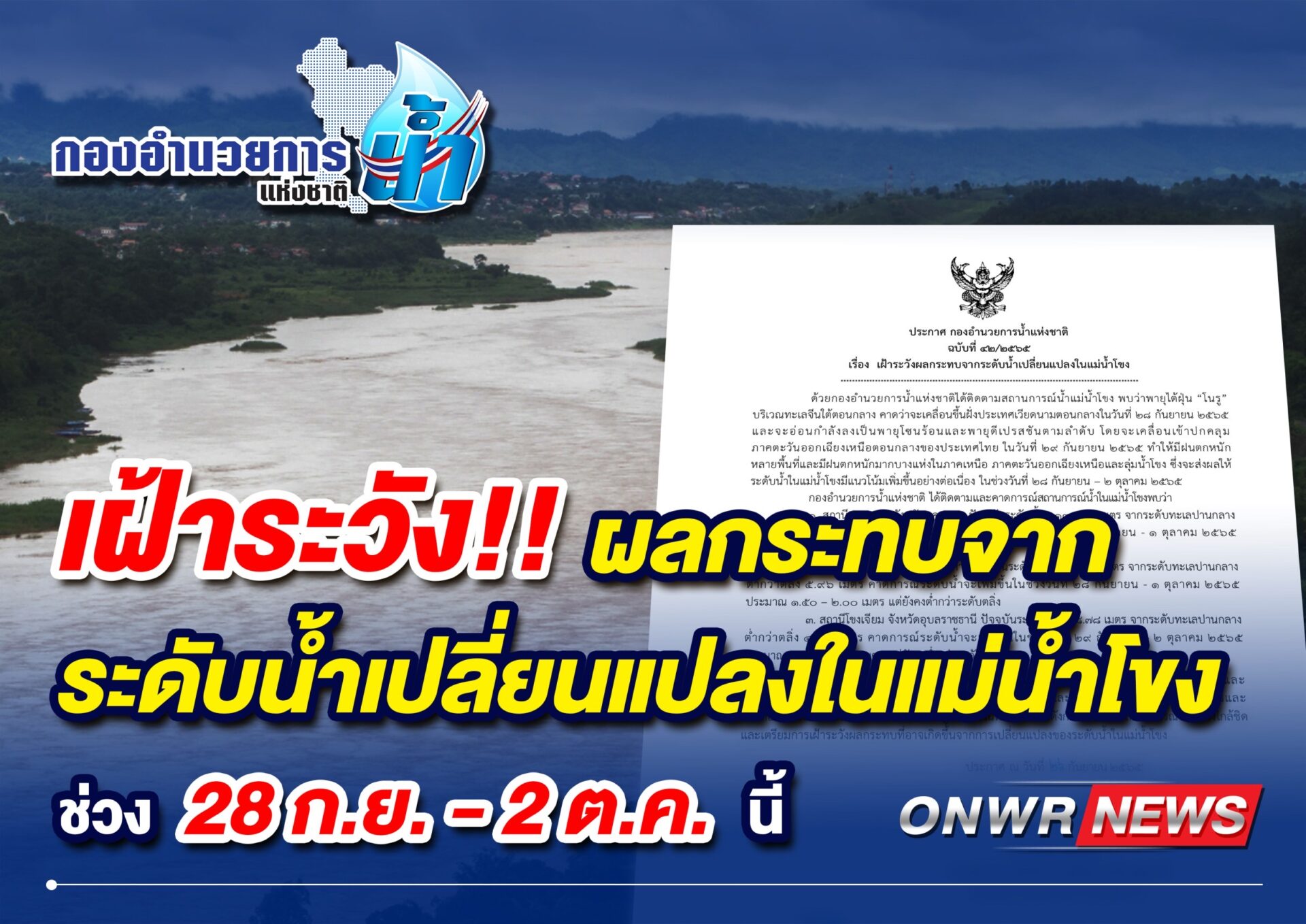 ล่าสุด กอนช. ออกประกาศ เรื่อง เฝ้าระวังผลกระทบจากระดับน้ำเปลี่ยนแปลงในแม่น้ำโขงที่อาจสูงขึ้นจากฝนที่ตกเพิ่มเพราะอิทธิพลจากพายุ “โนรู” ดังนี้