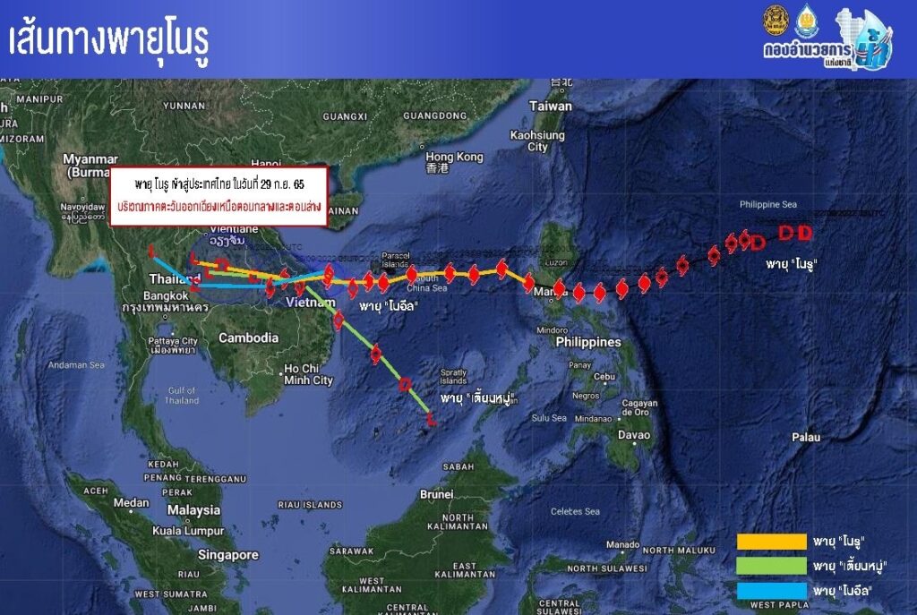 สำหรับสถานการณ์น้ำภาคตะวันออกเฉียงเหนือซึ่งเป็นพื้นที่แรกที่จะได้รับอิทธิพลจากพายุ “โนรู”เข้าฝั่งไทย ลุ่มน้ำมูลล่าสุด พบว่ามีน้ำล้นตลิ่งในหลายพื้นที่ ได้แก่ อ.พิมาย อ.จักราช จ.นครราชสีมา อ.จอมพระ อ.ท่าตูม จ.สุรินทร์อ.ห้วยทับทัน อ.เมืองศรีสะเกษ อ.กันทรารมย์ จ.ศรีสะเกษ อ.เมืองอุบลราชธานี อ.ตระการพืชผล จ.อุบลราชธานี และทุกสถานีมีแนวโน้มเพิ่มขึ้น