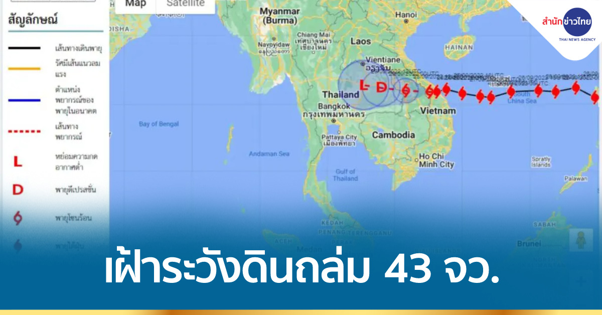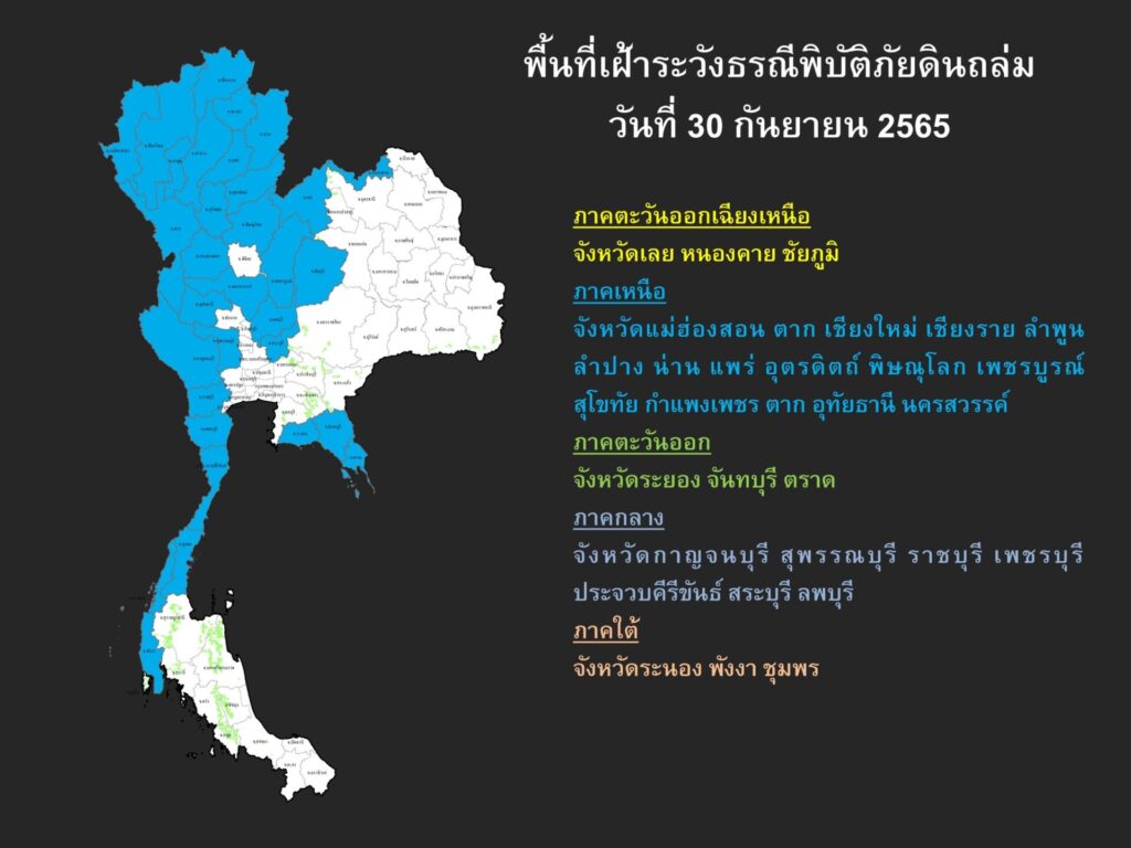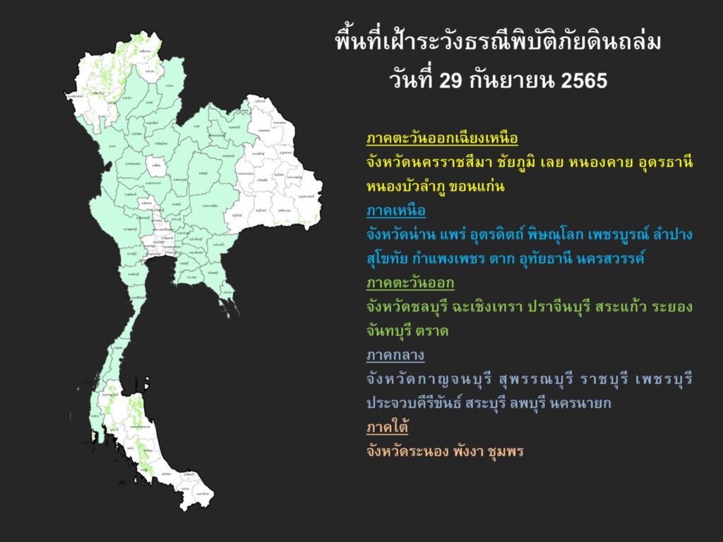 นายสุวิทย์ โคสุวรรณ รองโฆษกกรมทรัพยากรธรณีกล่าวว่า ศูนย์ปฏิบัติการธรณีพิบัติภัย กรมทรัพยากรธรณี ได้ติดตามสภาพอากาศและเฝ้าระวังสถานการณ์ดินถล่ม จากการคาดการณ์อิทธิพลพายุโซนร้อน “โนรู” ที่จะเข้าสู่ประเทศไทยคืนนี้ พบว่า พื้นที่ที่ได้รับผลกระทบจากดินถล่มส่วนใหญ่เป็นพื้นที่ราบเชิงเขาและชุมชนที่ตั้งอยู่ริมฝั่งทางน้ำตามร่องเขาที่มวลดินเคลื่อนที่ผ่านใน 43 จังหวัด