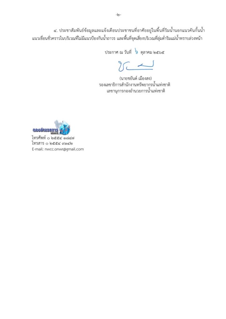 4. ประชาสัมพันธ์ข้อมูลและแจ้งเตือนประชาชนที่อาศัยอยู่ในพื้นที่ริมน้ำนอกแนวคันกั้นน้ำ แนวเขื่อนชั่วคราวในบริเวณที่ไม่มีแนวป้องกันน้ำถาวร และพื้นที่จุดเสี่ยงบริเวณที่ลุ่มต่ำริมแม่น้ำทราบล่วงหน้า.-สำนักข่าวไทย