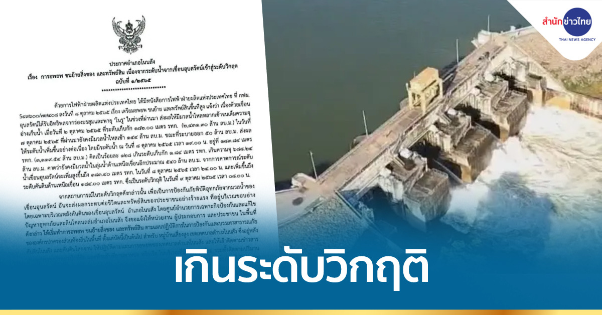 ขอนแก่น 10 ต.ค.- ปริมาณน้ำในเขื่อนอุบลรัตน์ จ. ขอนแก่น เพิ่มต่อเนื่องจนถึงระดับวิกฤติที่น้ำอาจล้นคันดินด้านเหนือเขื่อน ทำให้ต้องระบายน้ำเพิ่มอีกครั้ง ด้านนายอำเภอโนนสัง จ.หนองบัวลำภู ออกประกาศให้อพยพประชาชน