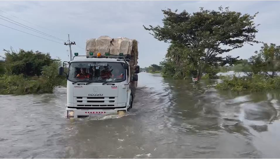 นายเฉลิมชัยกล่าวว่า ได้ย้ำให้ขนส่งเสบียงอาหารสัตว์ไปถึงมือเกษตรกรอย่างทั่วถึง ล่าสุดวานนี้ (14 ต.ค.) นำส่งโดยรถบรรทุกหญ้าอาหารสัตว์ไปยังอำเภอกันทรารมย์ จังหวัดศรีสะเกษซึ่งรถบรรทุกต้องลุยน้ำท่วมสูง จากนั้นนำลงเรือท้องแบนอีกทอดเพื่อไปให้ถึงชุมชน จนกระทั่งปศุสัตว์ที่เกษตรกรเคลื่อนย้ายไปอยู่ในที่สูงได้กินหญ้าที่นำไปให้ พร้อมกันนี้ยังมีเจ้าหน้าที่สัตวแพทย์และสัตวบาลเข้าไปดูแลสุขภาพสัตว์ให้ด้วย