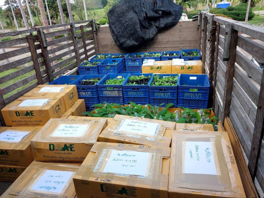 - การสนับสนุนให้เกษตรกรมีแหล่งอาหารใหม่ จึงได้มอบหมายให้กองขยายพันธุ์พืช และศูนย์ขยายพันธุ์พืชทั้ง 10 แห่งได้แก่ ศูนย์ขยายพันธุ์พืชที่ 1 จังหวัดชลบุรี ศูนย์ขยายพันธุ์พืชที่ 2 จังหวัดตรัง ศูนย์ขยายพันธุ์พืชที่ 3 จังหวัดนครราชสีมา ศูนย์ขยายพันธุ์พืชที่ 4 จังหวัดนครศรีธรรมราช ศูนย์ขยายพันธุ์พืชที่ 5 จังหวัดบุรีรัมย์ ศูนย์ขยายพันธุ์พืชที่ 6 จังหวัดพิษณุโลก ศูนย์ขยายพันธุ์พืชที่ 7 จังหวัดมหาสารคาม ศูนย์ขยายพันธุ์พืชที่ 8 จังหวัดลำพูน ศูนย์ขยายพันธุ์พืชที่ 9 จังหวัดสุพรรณบุรี และศูนย์ขยายพันธุ์พืชที่ 10 จังหวัดอุดรธานี ระดมกำลังเจ้าหน้าที่เร่งบรรจุและจัดชุดเมล็ดพันธุ์พืชผักพันธุ์ดี ประกอบด้วยเมล็ดพันธุ์ดีหลายชนิด ได้แก่ พริก มะเขือเปราะ ถั่วฝักยาว ถั่วพู และกระเจี๊ยบเขียวรวมกว่า 350,000 ซอง นำไปช่วยเหลือเกษตรกรในเบื้องต้น เพื่อเป็นพืชอาหาร และพืชทดแทนในส่วนของพื้นที่เกษตรที่ได้รับความเสียหาย และกำลังเร่งดำเนินการบรรจุและจัดชุดเพิ่มเติมอีก 200,000 ซอง เพื่อให้เพียงพอกับความต้องการของเกษตรกรให้ได้มากที่สุด รวมถึงสนับสนุนต้นพันธุ์พืชผักพืชอาหาร และต้นพันธุ์ไม้ผลไม้ยืนต้นอีกด้วย ซึ่งจะนำไปมอบให้เกษตรกรในพื้นที่ทันทีภายหลังน้ำลด โดยกระจายให้ครอบคลุมทุกพื้นที่ที่ประสบภัยมากที่สุด เกษตรกรสามารถแจ้งความจำนงได้ที่สำนักงานเกษตรอำเภอ และสำนักงานเกษตรจังหวัดใกล้บ้าน เพื่อให้เจ้าหน้าที่รวบรวมปริมาณ และแจ้งต่อศูนย์ขยายพันธุ์พืชเพื่อดำเนินการจัดสรร