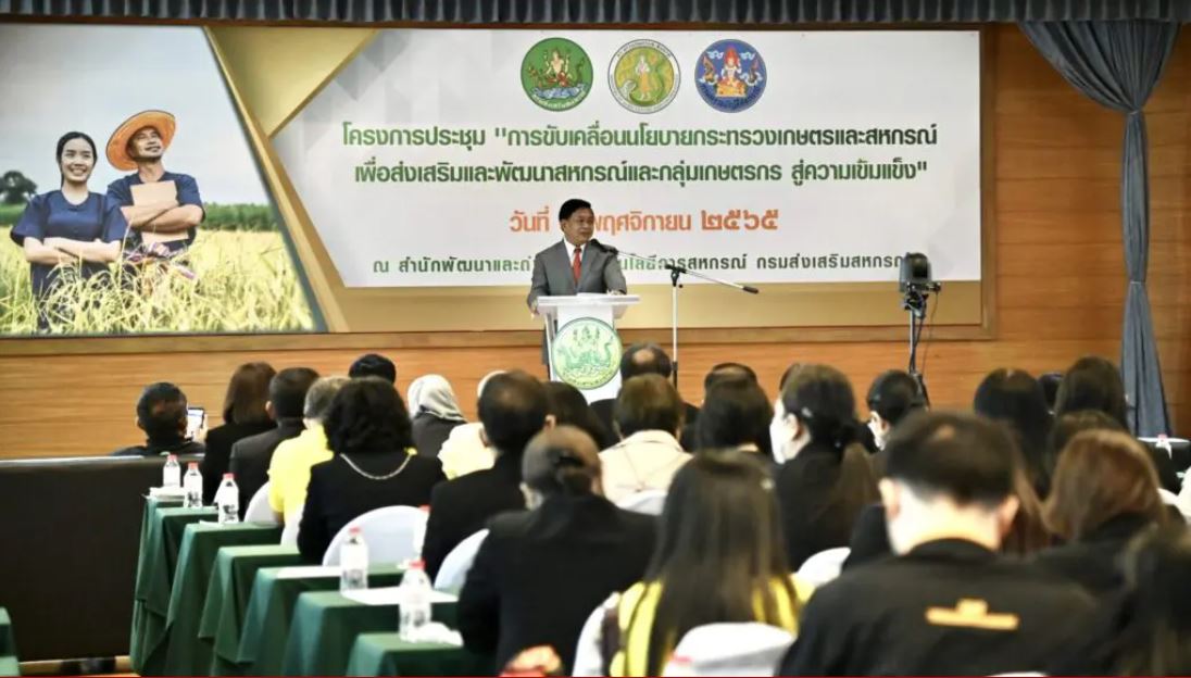 นายอลงกรณ์ พลบุตร ที่ปรึกษารัฐมนตรีว่าการกระทรวงเกษตรและสหกรณ์ เป็นประธานเปิดการประชุม “การขับเคลื่อนนโยบายกระทรวงเกษตรและสหกรณ์ เพื่อส่งเสริมและพัฒนาสหกรณ์และกลุ่มเกษตรกรสู่ความเข้มแข็ง” และมอบนโยบายการปฏิบัติราชการ ปีงบประมาณ พ.ศ. 2566 ให้แก่ข้าราชการกรมส่งเสริมสหกรณ์ และกรมตรวจบัญชีสหกรณ์ เพื่อขับเคลื่อนนโยบายของรัฐบาลด้านการเกษตรและขับเคลื่อนงานสำคัญของกระทรวงเกษตรและสหกรณ์ ตามแผนแม่บทยุทธศาสตร์ชาติในการพัฒนาให้เกษตรกรมีคุณภาพ ชีวิตที่ดี มีรายได้เพิ่มขึ้นไม่น้อยกว่าร้อยละ 10 ต่อปี โดยมุ่งเน้นให้เกษตรกรรวมกลุ่มกันช่วยเหลือตนเองและช่วยเหลือซึ่งกันและกันในรูปแบบของสหกรณ์ สร้างความเข้มแข็งให้แก่องค์กรของชุมชน นำแนวทางการตลาดนำการผลิต การส่งเสริมการเกษตรแบบแปลงใหญ่ และการนำเทคโนโลยีการเกษตรมาประยุกต์ใช้ในกระบวนการผลิต เพื่อลดต้นทุนค่าใช้จ่าย รวมทั้งควรมีการวางแผนการให้สินเชื่อแก่สมาชิกอย่างเหมาะสมสอดรับกับค่าใช้จ่ายในการประกอบอาชีพในแต่ละฤดูการผลิต ทั้งนี้ สหกรณ์จะต้องทำหน้าที่ส่งเสริมอาชีพและเป็นผู้รวบรวมผลผลิตที่ได้มาตรฐานจากสมาชิก พร้อมทั้งจัดหาตลาดรองรับปริมาณการผลิตของสมาชิกและเกษตรกรในชุมชนได้อย่างเหมาะสม