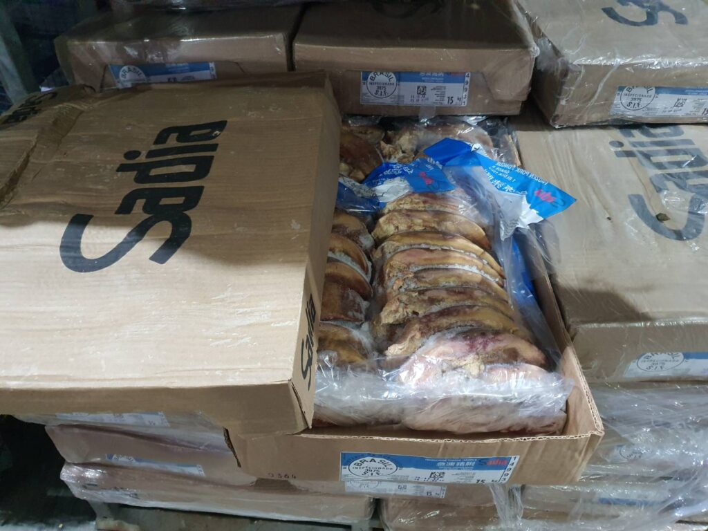 นายสัตวแพทย์สมชวน รัตนมังคลานนท์ อธิบดีกรมปศุสัตว์ กล่าวว่า มอบหมายให้นายสัตวแพทย์ชัยวัฒน์ โยธคล รองอธิบดีกรมปศุสัตว์ นำกำลังเจ้าหน้าที่กองสารวัตรและกักกัน ร่วมกับเจ้าหน้าที่ตำรวจกองบังคับการปราบปรามการกระทำผิดเกี่ยวกับการคุ้มครองผู้บริโภค (บก.ปคบ.) รวม 30 นาย เข้าตรวจสอบห้องเย็นแห่งหนึ่งในอำเภอเมือง จ.สมุทรสาคร ซึ่งประกอบกิจการลักษณะรับฝากและผลิตจำหน่ายสินค้าปศุสัตว์ เนื่องจากได้รับเบาะแสว่าห้องเย็นแห่งนี้เก็บซากสุกรที่นำเข้าโดยไม่ได้รับอนุญาตที่อาจมากถึง 4 ตัน แต่เมื่อเข้าตรวจสอบพบซากสุกรในลักษณะเป็นชิ้นส่วนสุกรทั้งหมด ได้แก่ คากิ ลำไส้ ลิ้น จมูก และหาง รวม 439,599 กิโลกรัม หรือกว่า 430 ตัน มูลค่าของกลางกว่า 40,000,000 บาท