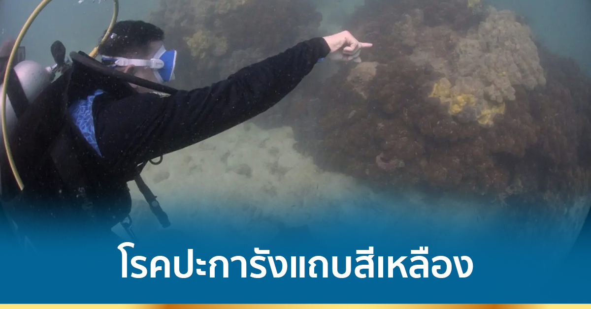 นายอรรถพล เจริญชันษา อธิบดีกรมทรัพยากรทางทะเลและชายฝั่งได้ดำน้ำเพื่อติดตามการระบาดของโรคปะการังแถบสีเหลืองบริเวณเกาะขาม จากนั้นระบุว่า ภายหลังจากที่ได้รับรายงานจากเจ้าหน้าที่ศูนย์วิจัยทรัพยากรทางทะเลและชายฝั่งอ่าวไทยตอนบนฝั่งตะวันออก (ศวบอ.) เรื่องการสำรวจระบบนิเวศแนวปะการังในปี 2564 – 2565 จำนวนทั้งสิ้น 90 สถานี ครอบคลุม 5 จังหวัด ได้แก่ ตราด จันทบุรี ระยอง ชลบุรี และประจวบคีรีขันธ์ ในบริเวณอ่าวไทยตอนบนและตอนกลาง พบว่า โรคแถบสีเหลืองนั้นกระจายตัวอยู่ เฉพาะบริเวณเกาะสัตหีบ – แสมสาร จังหวัดชลบุรี จำนวน11 สถานี รายงานการพบโรคนี้เป็นการพบครั้งแรกในประเทศไทย ปะการังส่วนใหญ่ที่สำรวจพบว่า เป็นโรค ได้แก่ปะการังโขด และปะการังเขากวาง โดยปริมาณการพบคิดเป็นร้อยละ 1 – 10 ของปะการังทั้ง 2 ชนิด