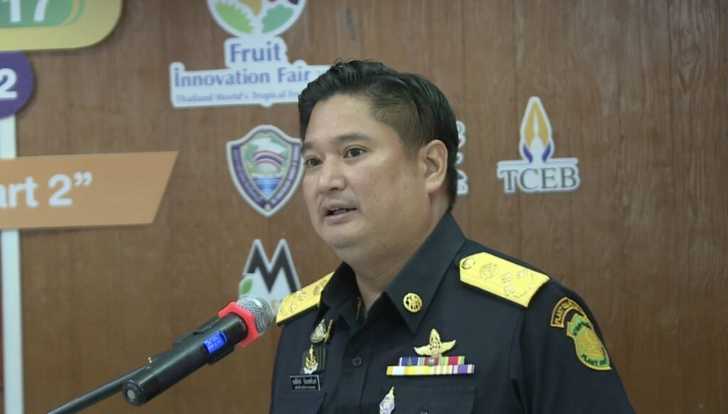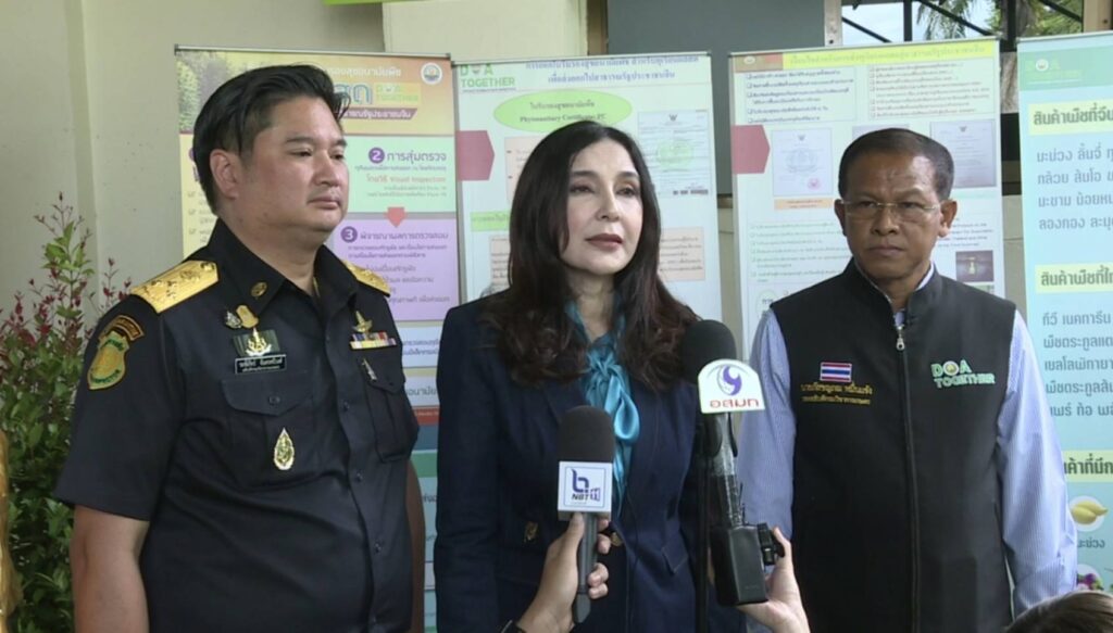 “วันนี้ขอแจ้งข่าวดีให้กับพี่น้องเกษตรกรและผู้ส่งออกที่มีความกังวลเรื่องการรับรองแปลงรหัสใหม่ที่อาจไม่ทันฤดูกาลส่งออกผลไม้ ขณะนี้กรมวิชาการเกษตรสามารถรับรองครบหมด 100 เปอร์เซ็นต์แล้ว และจะส่งให้ทางศุลกากรจีนเพื่อรับทราบผลการดำเนินการทันที และในช่วงฤดูผลไม้ออกมาก ๆ กรมวิชาการเกษตรจะระดมเจ้าหน้าที่ช่วยในการตรวจพืชตลอด 24 ชั่วโมง เพื่อให้สอดคล้องกับปริมาณผลไม้ที่ออกสู่ตลาด อย่างไรก็ตามขอความร่วมมือเกษตรกรไม่ตัดทุเรียนอ่อน หรือยินยอมให้มีการสวมสิทธิ์แปลง GAP เพราะตลอด 4 ปีที่ผ่านมา ที่กำกับดูแลกรมวิชาการเกษตร ได้กำชับเข้มข้นในเรื่องนี้และจะไม่ปล่อยผ่านเด็ดขาด เพื่อรักษาชื่อเสียงทุเรียนไทย ทั้งนี้ ได้นำเรียนผลความคืบหน้าการดำเนินงาน ให้กับ ดร.เฉลิมชัย ศรีอ่อน รัฐมนตรีว่าการกระทรวงเกษตรและสหกรณ์ และ พล.อ.ประยุทธ์ จันทร์โอชานายกรัฐมนตรีฯ รับทราบต่อเนื่องด้วยแล้ว และในปีหน้ากระทรวงเกษตรฯ มีเป้าหมายที่จะพัฒนาคุณภาพผลไม้เพื่อเพิ่มยอดส่งออกให้ได้มากกว่า 1.5 แสนล้านบาท” รมช.มนัญญา กล่าว