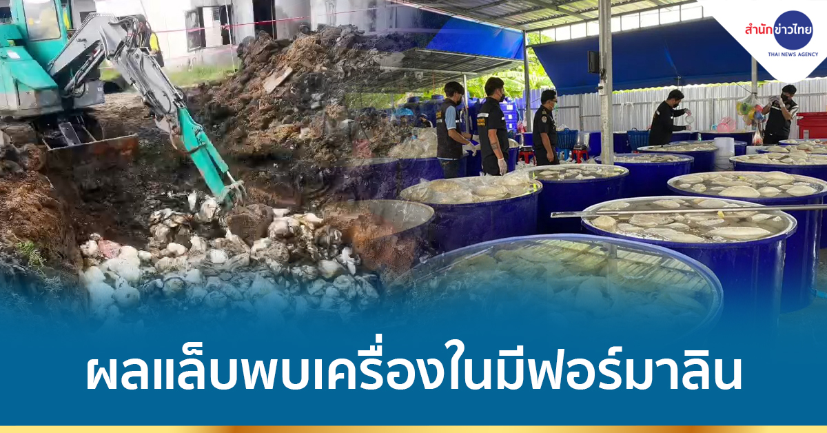นายสัตวแพทย์สมชวน รัตนมังคลานนท์ อธิบดีกรมปศุสัตว์เปิดเผยว่า สำนักตรวจสอบคุณภาพสินค้าปศุสัตว์ กรมปศุสัตว์ ได้รายงานผลการตรวจวิเคราะห์ทางห้องปฏิบัติการ จากการเก็บตัวอย่างเนื้อและเครื่องในหมูและวัวแช่ฟอร์มาลินที่ตรวจยึดได้จากแหล่งลักลอบผลิตในจังหวัดชลบุรีส่งตรวจ โดยผลยืนยันว่า พบสารฟอร์มาลินปนเปื้อนในน้ำและชิ้นส่วนเครื่องในที่แช่ในถัง