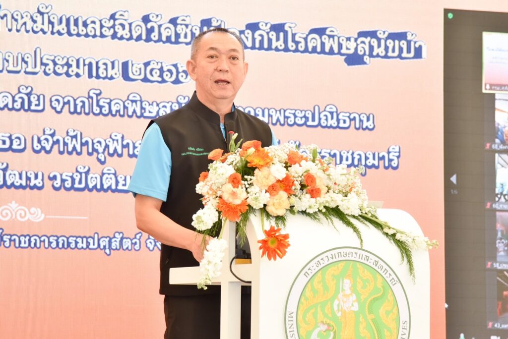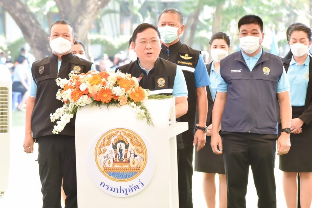 กรมปศุสัตว์จัดกิจกรรม “โครงการผ่าตัดทำหมันและฉีดวัคซีนป้องกันโรคพิษสุนัขบ้า ประจำปีงบประมาณ 2566” เพื่อขับเคลื่อนโครงการสัตว์ปลอดโรค คนปลอดภัย จากโรคพิษสุนัขบ้า ตามพระปณิธานฯ โดยมี ดร.เฉลิมชัย ศรีอ่อน รัฐมนตรีว่าการกระทรวงเกษตรและสหกรณ์เป็นประธานเปิดงาน นายณรงค์ศักดิ์ โอสถธนากร ผู้ว่าราชการจังหวัดปทุมธานีกล่าวต้อนรับ นายสัตวแพทย์สมชวน รัตนมังคลานนท์ อธิบดีกรมปศุสัตว์กล่าวรายงาน และเจ้าหน้าที่ที่เกี่ยวข้องเข้าร่วม ณ ศูนย์ราชการกรมปศุสัตว์ จังหวัดปทุมธานี