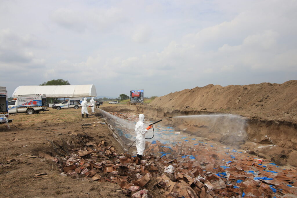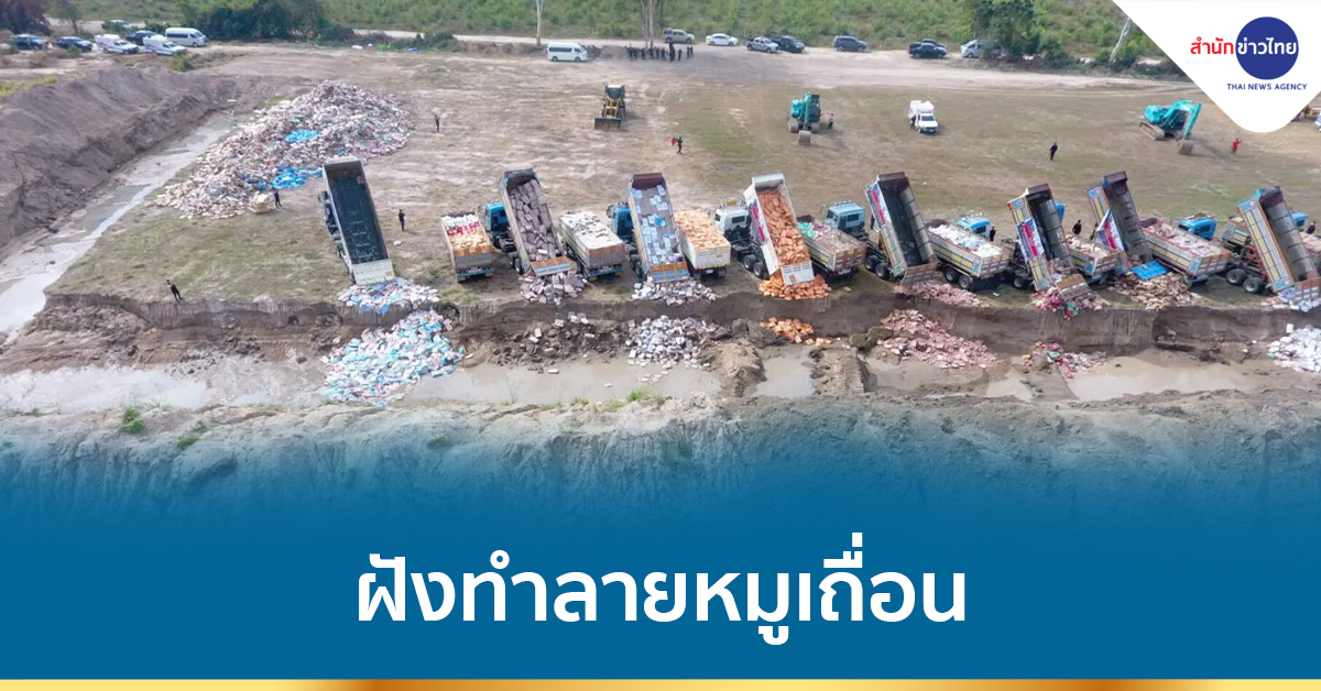 ทั้งนี้ วิธีการฝังทำลายชิ้นส่วนเครื่องในและเนื้อสุกรของกลางเป็นไปตามมาตรฐานขององค์การสุขภาพสัตว์โลก (World Organization for Animal Health หรือ WOAH) ซึ่งเป็นวิธีที่เหมาะสมในการทำลายซากและของเสียจากสัตว์ปริมาณมากที่สามารถทำได้ง่าย ประหยัดค่าใช้จ่าย มีประสิทธิภาพในการป้องกันการแพร่กระจายของเชื้อโรค และไม่กระทบต่อสิ่งแวดล้อม.-สำนักข่าวไทย