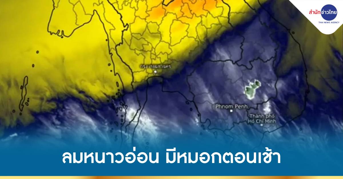 กรุงเทพฯ 13 ม.ค. – กรมอุตุนิยมวิทยาระบุ มวลอากาศเย็นที่แผ่ลงมาปกคลุมประเทศไทยตอนบน อ่อนกำลังลง ส่งผลให้มีหมอกในตอนเช้า ประกอบกับลมตะวันออกหอบความชื้นเข้ามา ทำให้บริเวณภาคอีสานตอนล่าง ภาคตะวันออก กทม. และปริมณฑลมีฝนตกเล็กน้อย