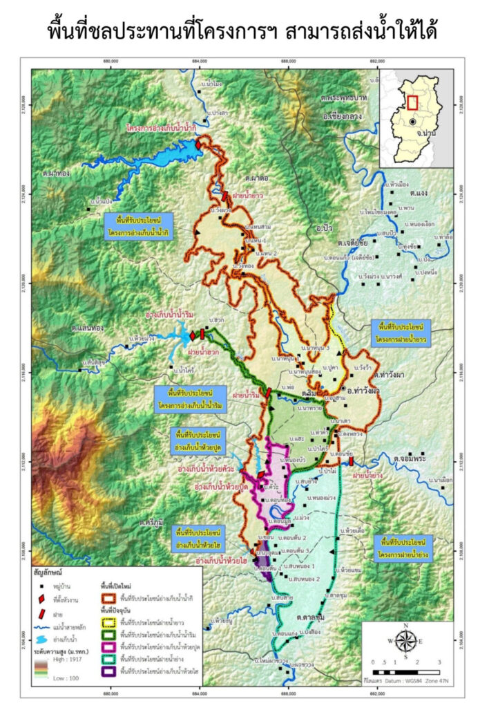 ทั้งนี้เมื่อปี พ.ศ. 2555 องค์การบริหารส่วนตำบลผาทอง อำเภอท่าวังผาได้ขอรับการสนับสนุนโครงการอ่างเก็บน้ำน้ำกิพร้อมระบบส่งน้ำในท้องที่บ้านวังผา หมู่ที่ 2 ตำบลผาทอง โดยมีพื้นที่รวม 1,733 ไร่ 84 ตารางวา พื้นที่โครงการตั้งอยู่ในเขตป่าสงวนแห่งชาติน้ำยาวและป่าน้ำสวด คณะกรรมการพิจารณาการใช้ประโยชน์ในเขตป่าสงวนแห่งชาติ มีมติเห็นชอบให้กรมชลประทานใช้พื้นที่ดังกล่าวแล้ว ต่อมากรมชลประทานได้เปิดรับฟังความเห็นจากชุมชน เสนอรายงานการประเมินผลกระทบสิ่งแวดล้อม (EIA) โครงการพัฒนาแหล่งน้ำเรียบร้อยแล้ว ต่อมาคณะกรรมการทรัพยากรน้ำแห่งชาติ (กนช.) ได้มีมติเห็นชอบโครงการ แล้วนำเสนอต่อที่ประชุมครม. อนุมัติเปิดโครงการ