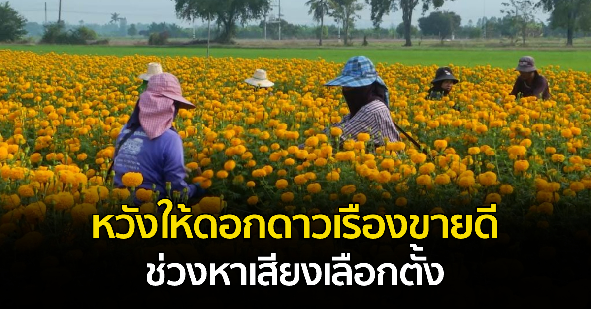 สุพรรณบุรี 12 ก.พ. – เกษตรกรใน จ.สุพรรณบุรี ซึ่งปลูกดาวเรืองตัดดอก หวังว่ารอบการผลิตนี้จะตรงกับช่วงหาเสียงเลือกตั้ง เนื่องจากได้รับความนิยมนำไปร้อยพวงมาลัยสำหรับคล้องคอนักการเมือง ด้วยความเชื่อที่ว่าสื่อถึงความเจริญรุ่งเรืองตามชื่อ โดยช่วงหาเสียงเลือกตั้งนั้น ราคาดอกดาวเรืองในตลาดจะสูงขึ้น ผู้ได้กำไรมากคือ พ่อค้าคนกลาง ส่วนคนปลูกขายได้ราคาเท่าเดิม แต่ได้อานิสงส์จากปริมาณการตัดดอกขายที่เพิ่มขึ้นตามความต้องการใช้.-สำนักข่าวไทย