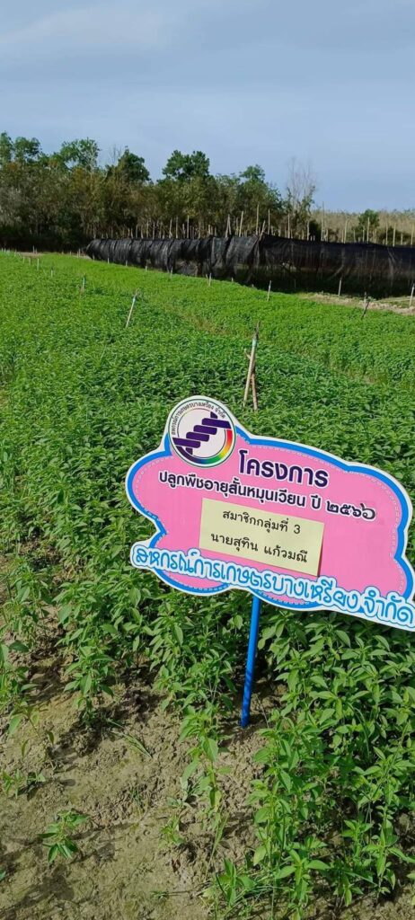 ขณะที่นายสุทิน แก้วมณี หนึ่งในสมาชิกสหกรณ์การเกษตรบางเหรียง จำกัด ที่ยึดอาชีพปลูกพืชผักระยะสั้นมาอย่างยาวนาน โดยปลูกผักสลับกันไปบนเนื้อที่ 5 ไร่ ผักที่ปลูกมีหลายชนิด ได้แก่ ต้นหอม ผักชีฝรั่ง ผักกาดหอม แมงลัก มะเขือ พริกและอื่น ๆ ขึ้นอยู่กับความต้องการของตลาด