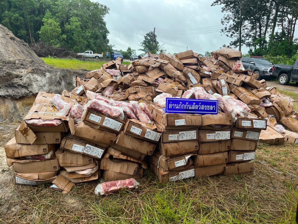 นายสัตวแพทย์สมชวน รัตนมังคลานนท์ อธิบดีกรมปศุสัตว์ เปิดเผยว่า ได้รับรายงานจากเจ้าหน้าที่ด่านกักกันสัตว์สงขลา หลังจากเจ้าหน้าที่ฝ่ายสืบสวนและปราบปราม สำนักงานศุลกากรภาคที่ 4 ร่วมกับด่านศุลกากรสะเดา หน่วยสืบสวนปราบปรามสงขลา และหน่วยเฉพาะกิจกรมทหารราบที่ 5 จับกุมผู้ต้องหา พร้อมของกลาง เป็นซากสุกรแช่แข็งลักลอบจำนวน 30 ตัน หรือ 30,000 กิโลกรัม ซึ่งมีถิ่นกำเนิดจากต่างประเทศ (บราซิล) บริเวณลานขนถ่ายสินค้าในพื้นที่อำเภอสะเดา จังหวัดสงขลา เมื่อวันที่ 22 กุมภาพันธ์ 2566 ที่ผ่านมา เนื่องจากไม่พบเอกสารเกี่ยวกับการผ่านพิธีการศุลกากร รวมทั้งเอกสารใบอนุญาตนำเข้า หรือเอกสารอื่นที่เกี่ยวข้องในการปฏิบัติพิธีการศุลกากร จากนั้นด่านศุลกากรสะเดา ได้ทำการส่งมอบซากสุกรแช่แข็งของกลางทั้งหมดให้กับด่านกักกันสัตว์สงขลา เพื่อจัดการทำลายซากหลังเสร็จสิ้นขั้นตอนทางกฎหมาย
