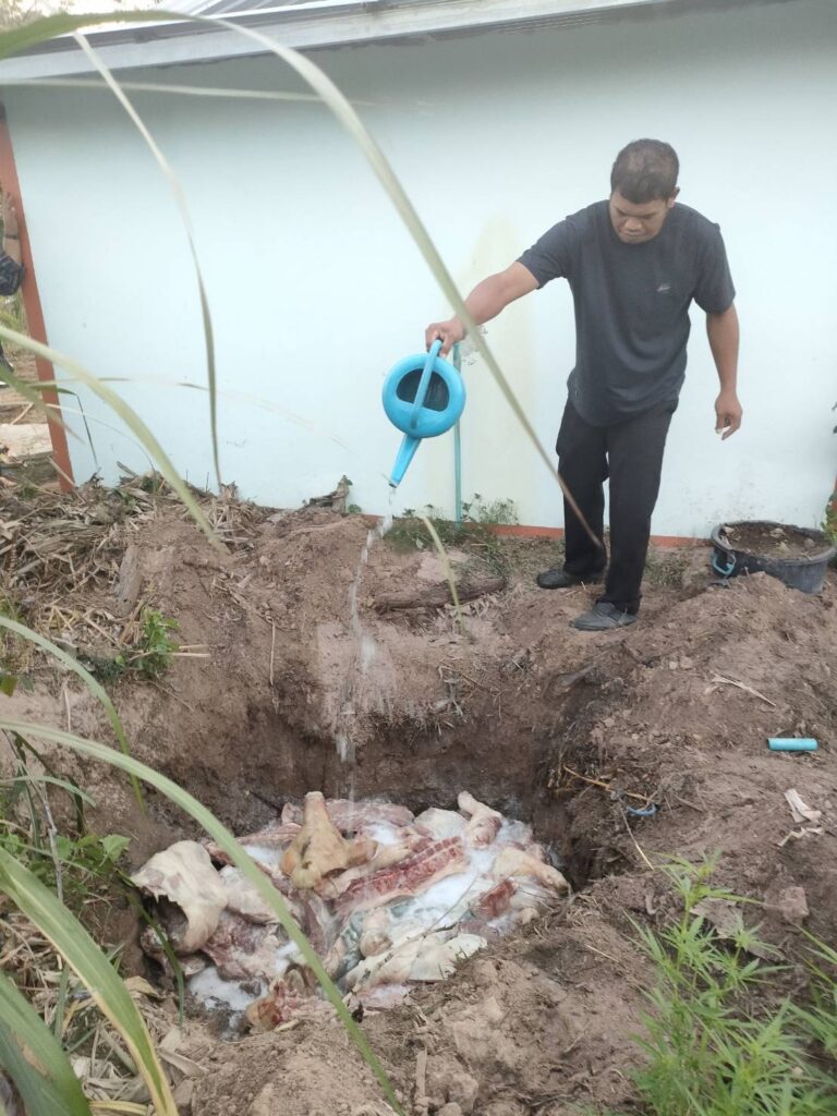 ศรีสะเกษ 4 มี.ค.– เจ้าหน้าที่ชุดเฉพาะกิจกรมปศุสัตว์ตรวจจับโรงฆ่าสัตว์เถื่อนใน อ.กันทรารมย์ จ.ศรีสะเกษ พบซากสุกร เนื้อสุกรชำแหละ พร้อมอุปกรณ์ที่ใช้ฆ่าสัตว์หลายรายการ นำเจ้าของส่งพนักงานสอบสวน สภ. กันทรารมย์ดำเนินคดีตาม พ.ร.บ.ควบคุมการฆ่าสัตว์เพื่อการจำหน่ายเนื้อสัตว์ เตือนผู้ประกอบการต้องทำให้ถูกต้องตามกฎหมายและถูกสุขลักษณะ เพื่อความปลอดภัยของผู้บริโภค แนะประชาชนเลือกซื้อสินค้าปศุสัตว์มาตรฐาน “ปศุสัตว์ OK”
