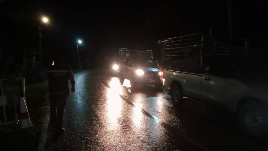 จนกระทั่งเมื่อเวลา 20.50 น. มีรถกระบะ 5 คัน ขับมาบนทางหลวงหมายเลข 1267 เจ้าหน้าที่จึงแสดงตัวเรียกให้รถยนต์ดังกล่าวหยุดจอด จากการตรวจสอบพบว่า คาราวานรถบรรทุกโคมีชีวิต เพศผู้มารวม 30 ตัว เมื่อสอบถามผู้ขับขี่ ให้การเบื้องต้นว่า เคลื่อนย้ายโคทั้งหมดจากต้นทางที่บ้านแม่สลิด หมู่ที่ 2 ตำบลแม่สอง อำเภอท่าสองยางเพื่อไปส่งที่บ้านแม่ระเมิง หมู่ที่ 8 ตำบลแม่สอง อำเภอท่าสองยาง โดยเมื่อนำโคที่บรรทุกมาลงที่บ้านแม่ระเมิงแล้ว จะมีรถบรรทุกจากอำเภออมก๋อย จังหวัดเชียงใหม่มารับช่วงต่อเพื่อเคลื่อนย้ายโคไปยังปลายทางที่อำเภออมก๋อย