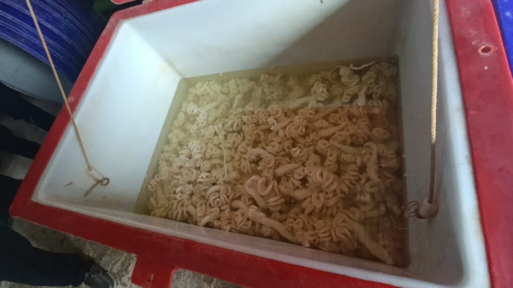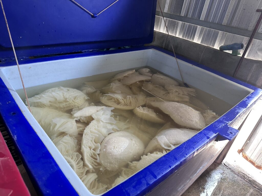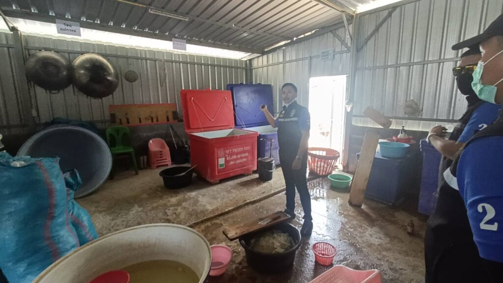 เมื่อเข้าตรวจสอบพบว่า สถานประกอบการแห่งนี้ ผลิตไส้ตัน สไบนาง และหมึกกรอบ โดยตรวจพบไส้ตันแช่แข็งซึ่งข้างกล่องระบุนำเข้าจากประเทศเยอรมนี 39 กล่อง น้ำหนัก 500 กิโลกรัม อีกทั้งมีไส้ตันแปรรูปแช่สารโซดาไฟและฟอร์มาลีน 1 ถัง น้ำหนัก 200 กิโลกรัม สไบนางแช่สารโซดาไฟ ไฮโดรเจนเปอร์ออกไซด์ และฟอร์มาลีน 2 ถัง น้ำหนัก 400 กิโลกรัม และหมึกกรอบแช่สารฟอร์มาลิน 1 ถัง น้ำหนัก 100 กิโลกรัม