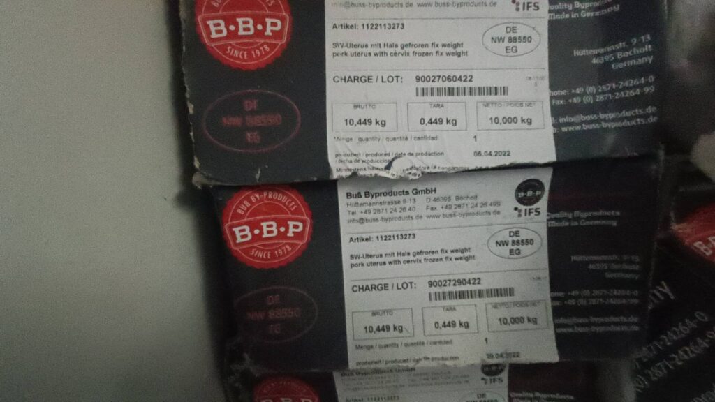 ชลบุรี 27 พ.ค. – อธิบดีกรมปศุสัตว์ เผยสารวัตรปศุสัตว์ร่วมกับปศุสัตว์ชลบุรี บุกตรวจสถานประกอบการผลิตเนื้อสัตว์ใน อ.พานทอง พบชิ้นส่วนหมูเถื่อน ซ้ำแช่ฟอร์มาลีน ไฮโดรเจนเปอร์ออกไซด์ และโซดาไฟ เตรียมส่งร้านหมูกระทะ จึงตรวจยึดอายัดของกลางน้ำหนักรวมกว่า 1 ตัน ส่ง สภ.พานทอง ดำเนินคดี