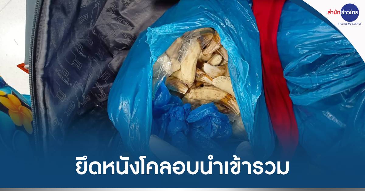สมุทรปราการ 13 มิ.ย.-อธิบดีกรมปศุสัตว์ เผย เจ้าหน้าที่ด่านกักกันสัตว์สุวรรณภูมิ จับกุมชาวอินเดียลักลอบนำเข้าหนังโค 60 กก. และเขี้ยวหมู 140 กก. ซุกซ่อนมาในกระเป๋าเดินทาง 6 ใบ รับนำเข้าเพื่อมาทำเป็นเครื่องประดับและเครื่องรางของขลัง โดยเขี้ยวหมูจะหลอกขายเป็นเขี้ยวเสือ