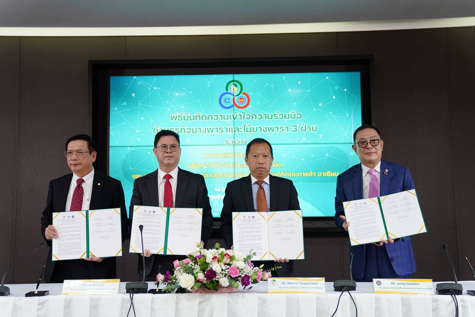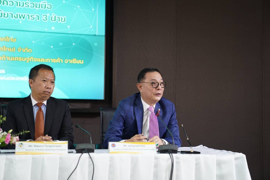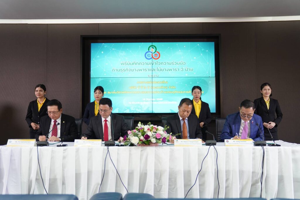 การยางแห่งประเทศไทย (กยท.) ร่วมกับ บริษัท ซี ซี ไอ ซี (ประเทศไทย) จำกัด (C.C.I.C) และสมาคมวิสาหกิจขนาดกลางและขนาดย่อมด้านเศรษฐกิจและการค้าอาเซียน (SMEs ASEAN) ร่วมลงนามบันทึกข้อตกลงความร่วมมือ (MOU) ด้านธุรกิจยางพาราและไม้ยางพารา เพื่อส่งเสริม สนับสนุนการพัฒนามาตรฐานและการตรวจรับรองผลิตภัณฑ์ยางพาราและไม้ยางพาราไทย