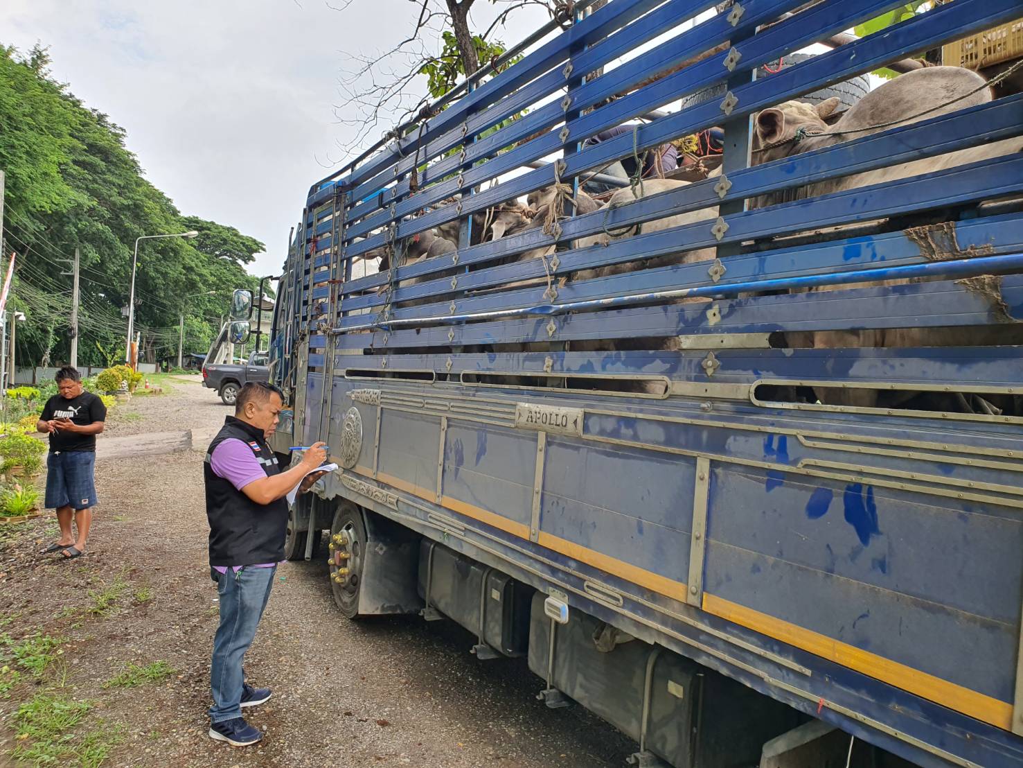 สำหรับรถบรรทุกคันที่ 1 ที่เรียกตรวจสอบ เป็นรถบรรทุกพ่วง 12 ล้อ โดยหัวลากบรรทุกโค 23 ตัวและลูกพ่วง 12 ล้อบรรทุกโค 20 ตัว รวม 43 ตัว เดินทางจากตำบลมหาวัน อำเภอแม่สอด จังหวัดตาก เพื่อเคลื่อนย้ายไปยังจังหวัดสุโขทัย