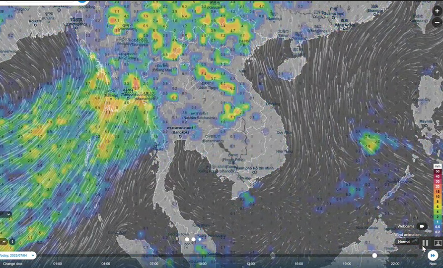 ในระยะนี้เกิดสภาวะฝนทิ้งช่วง อาจมีฝนตกบ้างบางพื้นที่ แต่ไม่สม่ำเสมอ โดยช่วงวันที่ 4 -17 กรกฎาคม ฝนยังมีน้อย มีเกิดขึ้นบ้างด้านรับมรสุม รวมถึงภาคตะวันออกเฉียงเหนือตอนบนและด้านตะวันออกซึ่งใกล้หย่อมความกดอากาศต่ำ คาดว่า หลังวันที่ 17 กรกฎาคม สถานการณ์ฝนจะเริ่มกระจายดีขึ้นบ้าง โดยหวังให้มีพายุหมุนเขตร้อนก่อตัวเคลื่อนตัวเข้าใกล้ประเทศไทยซึ่งพอจะฝนเข้ามาบ้าง แต่ปริมาณต้องติดตามกันต่อเนื่อง อาจจะได้น้ำบ้างด้านภาคตะวันออกเฉียงเหนือตอนบนและด้านตะวันออก ส่วนภาคอื่นต้องประเมินกันเป็นระยะๆ