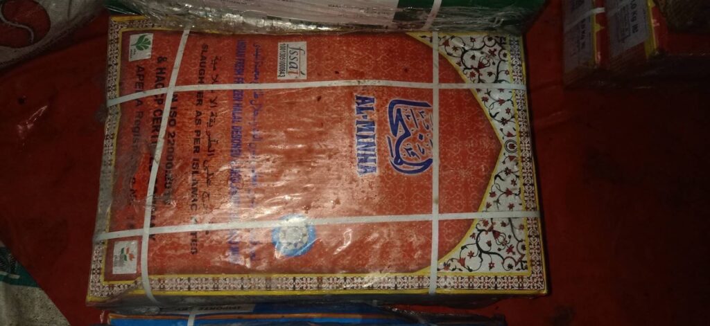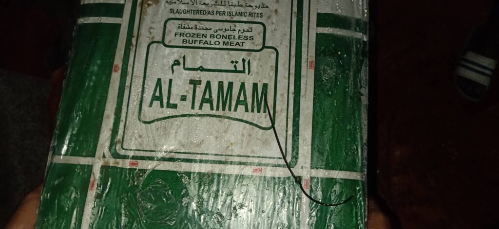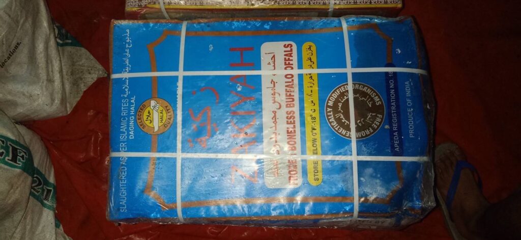 1) เนื้อกระบือแช่แข็งบรรจุลัง (คละยี่ห้อ) มีต้นกำเนิดจากประเทศอินเดีย จำนวน 47 ลัง น้ำหนักรวม 1,032 กิโลกรัม