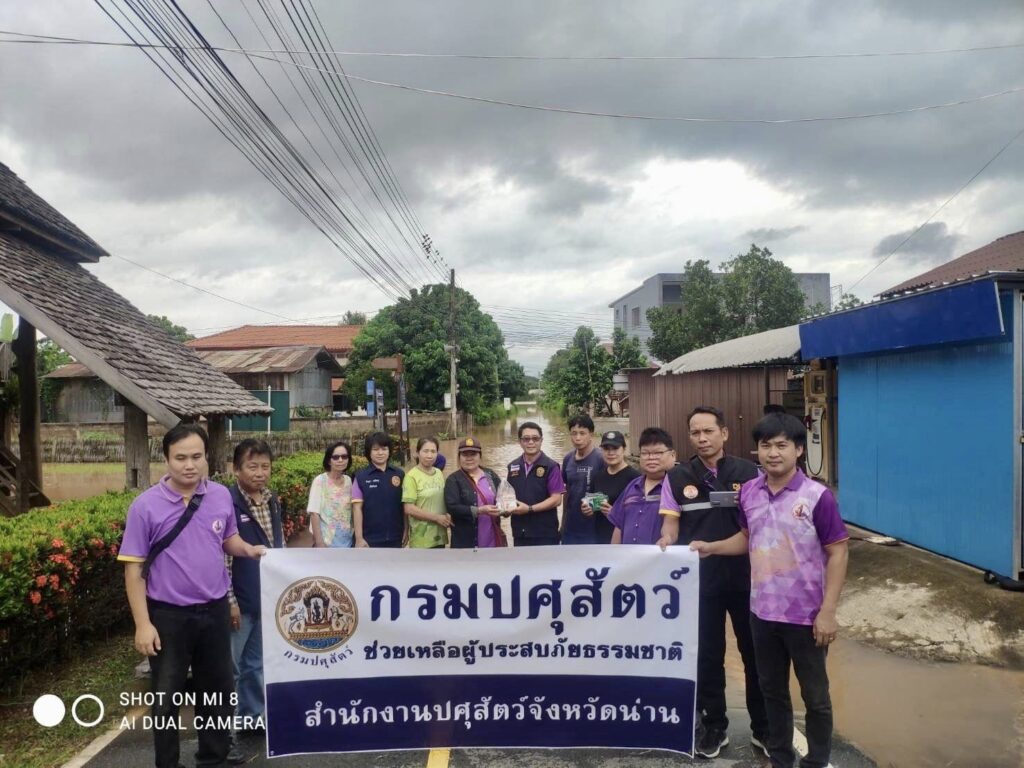 ล่าสุดได้รับรายงานจากนายนพดล พินิจ ปศุสัตว์จังหวัดน่านว่า ได้ติดตามสถานการณ์น้ำท่วมฉับพลัน เนื่องจากน้ำป่าไหลหลาก และลำน้ำน่านล้นตลิ่ง เพื่อสำรวจความเสียหายเบื้องต้นและมอบเวชภัณฑ์สัตว์ช่วยเหลือและบรรเทาผลกระทบในเบื้องต้นแก่เกษตรกรผู้ประสบอุทกภัย ณ หมู่ที่ 5 บ้านหนองบัว ตำบลป่าคา อำเภอท่าวังผา พร้อมให้เจ้าหน้าที่เฝ้าระวังสถานการณ์น้ำท่วมฉับพลันที่อาจเกิดขึ้นได้อกี พร้อมเตือนภัยเกษตรกรให้ทราบ รวมทั้งให้เจ้าหน้าที่สำนักงานปศุสัตว์อำเภอปรับปรุงทะเบียนผู้เลี้ยงสัตว์ให้เป็นปัจจุบัน วางแผนร่วมกับพื้นที่จัดตั้งจุดอพยพสัตว์ใกล้บ้าน พร้อมให้ความช่วยเหลือผู้ประสบภัยทันที เมื่อเกิดภัยผ่านอาสาปศุสัตว์ เจ้าหน้าที่ อปท. ปศุสัตว์อำเภอ และปศุสัตว์จังหวัดตามที่กรมปศุสัตว์ได้สั่งการในเตรียมรับมืออุทกภัยไว้แล้วต่อไป
