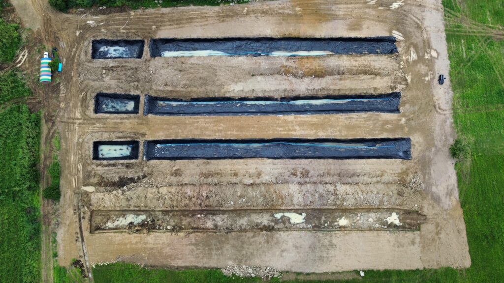 สำหรับขั้นตอนการฝังทำลาย มีคณะกรรมการทำลายซากสุกร แต่งตั้งโดยกรมปศุสัตว์ ทำหน้าที่จดบันทึกรายละเอียดตู้สินค้าซากสุกร พร้อมตัด SEAL ก่อนนำซากไปฝังทำลาย หลุมฝังซากมีจำนวน 6 หลุม แต่ละหลุมมีความยาว 150 เมตร ความกว้าง 9 เมตร ความลึก 4 เมตร ปูด้วยพลาสติก PE (หนา 0.3 มิลลิเมตร) ทุกหลุมเพื่อป้องกันของเสียจากซากสัตว์ที่อาจปนเปื้อนสู่ธรรมชาติ การฝังซากจะใช้วิธีการยกตู้คอนเทนเนอร์เทซากออกจากตู้ โดยใช้เครนยกหัวท้าย ก่อนฝังซากจะโรยด้วยปูนขาวที่ก้นหลุม เมื่อซากเต็มหลุม พ่นทับด้วยน้ำยา EM และใช้แบคโฮและแทรกเตอร์ฝังดินกลบหลุม โดยทุกหลุมติดตั้งท่อระบายแก๊สจากซากที่เน่าเปื่อยตามธรรมชาติ โดยวิธีการฝังกลบทำลาย ให้เป็นไปตามมาตรฐาน ขององค์การโรคระบาดสัตว์ระหว่างประเทศ