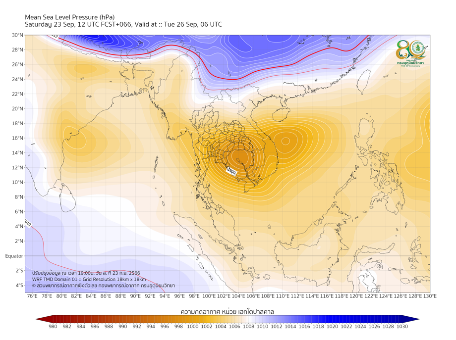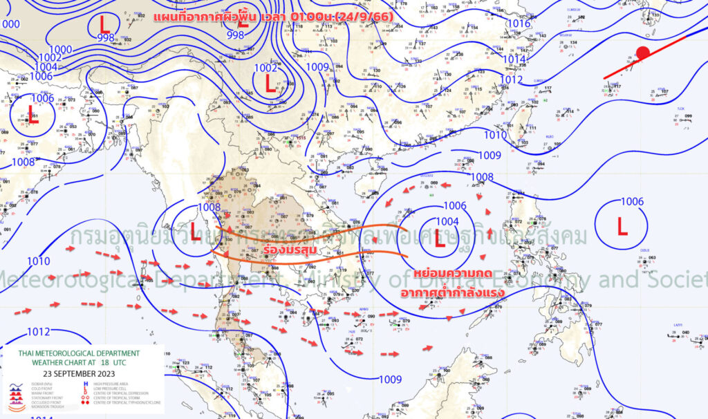 ล่าสุดกรมอุตุนิยมวิทยาแจ้งผลการพยากรณ์อากาศว่า ช่วงวันที่ 26 – 29 กันยายน หย่อมความกดอากาศต่ำกำลังแรงบริเวณทะเลจีนใต้จะเคลื่อนตามแนวร่องมรสุม เข้าปกคลุมประเทศเวียดนามตอนกลาง ลาว และภาคตะวันออกเฉียงเหนือตอนล่าง ภาคกลาง ภาคตะวันออก กทม. และปริมณฑล โดยยังต้องติดตามและประเมินเป็นระยะๆ ว่า หย่อมความกดอากาศต่ำจะทวีกำลังแรงขึ้นเป็นพายุได้หรือไม่ แต่ลักษณะดังกล่าวจะทำให้ประเทศไทยมีฝนเพิ่มขึ้นและตกหนักถึงหนักมากบางแห่งในบริเวณที่หย่อมความกดอากาศต่ำที่เคลื่อนเข้าปกคลุม จากนั้นระหว่างวันที่ 30 กันยายน – 3 ตุลาคม จะยังคงมีฝนตกต่อเนื่องตามแนวร่องมรสุมที่จะเลื่อนขึ้นมาพาดผ่านภาคเหนือตอนล่าง ภาคตะวันออกเฉียงเหนือ และภาคกลางตอนบน