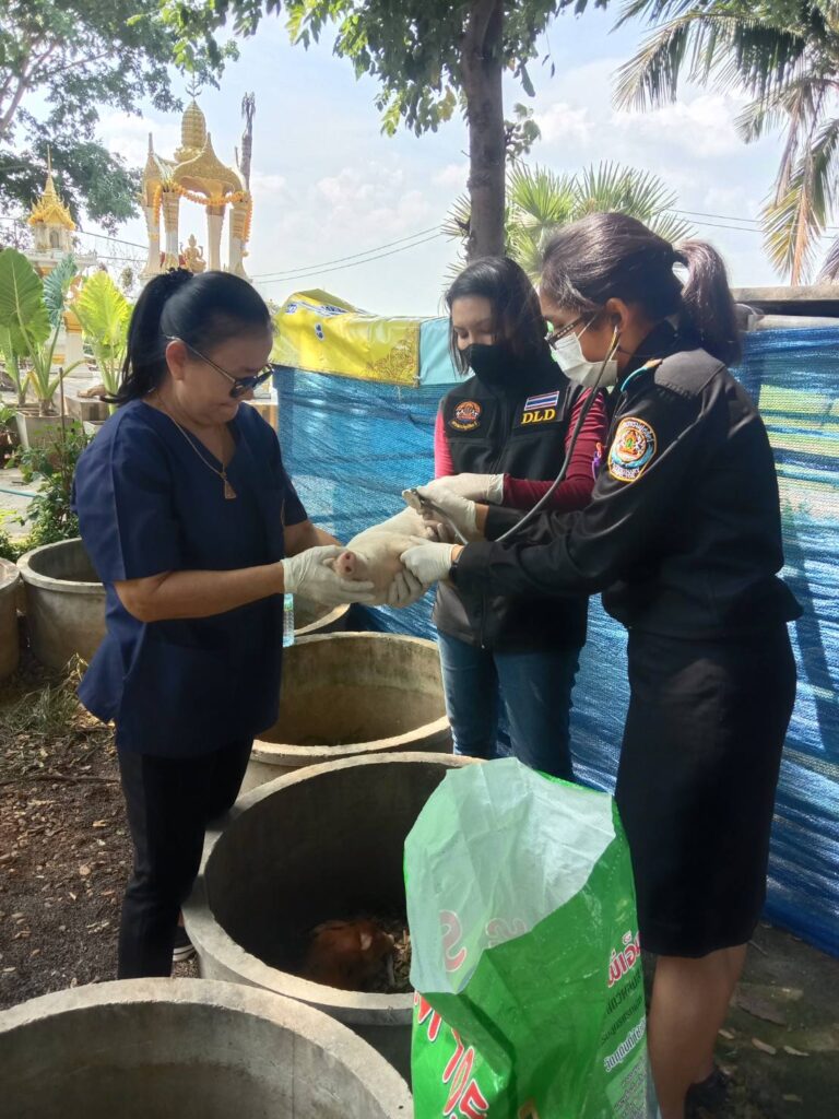 นายธนยศ นงบาง ปศุสัตว์จังหวัดสิงห์บุรีกล่าวว่า ได้นำสัตวแพทย์เข้าตรวจสุขภาพลูกหมู 68 ตัวซึ่งอาศัยอยู่ภายในวัดน้อยเจริญธรรมหมู่ 7 ตำบลต้นโพธิ อำเภอเมือง จังหวัดสิงห์บุรี โดยลูกหมูเหล่านี้ถูกนำมาทิ้งไว้บริเวณถนนหน้าวัดวานนี้ (17 ตุลาคม) จนสามเณรมาพบเข้าตอนเช้าตรู่ สำหรับตัวอย่างเลือดจะส่งตรวจสถาบันสุขภาพสัตว์แห่งชาติเพื่อส่งวินิจฉัยโรคระบาดสำคัญในสุกร คาดว่า จะทราบผลภายใน 1 สัปดาห์