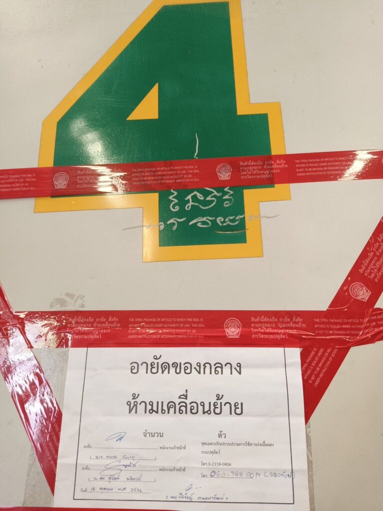 คณะพนักงานเจ้าหน้าที่ได้ขอตรวจสอบเอกสารขออนุญาตนำเข้าและขออนุญาตเคลื่อนย้าย แต่เจ้าของห้องเย็นไม่สามารถนำมาแสดงได้ จึงยึดอายัดซากสัตว์และชิ้นส่วนสัตว์ดังกล่าวไว้ตรวจสอบและให้ผู้ที่เป็นเจ้าของนำเอกสารหลักฐานมาแสดงแก่พนักงานเจ้าหน้าที่ภายใน 15 วัน นับตั้งแต่วันที่ทำบันทึกอายัดซากไว้ หากไม่สามารถนำเอกสารหลักฐานมาแสดงแก่พนักงานเจ้าหน้าที่ได้ พนักงานเจ้าหน้าที่แจ้งความดำเนินคดีต่อพนักงานสอบสวนในความผิดตามพระราชบัญญัติโรคระบาดสัตว์ พ.ศ. 2558
